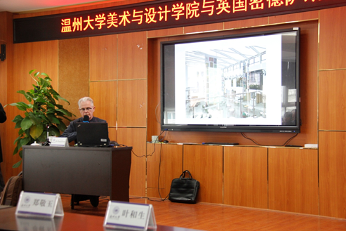 1月9日下午,英国密德萨斯大学( Middlesex University )David Fern博士来公司作《场所营造及室内设计:感官 记忆 洞察力》校际交流,公司60多名师生参加活动,胡文超副经理、李勋祥教授出席,系主任黄玫玮老师主持。