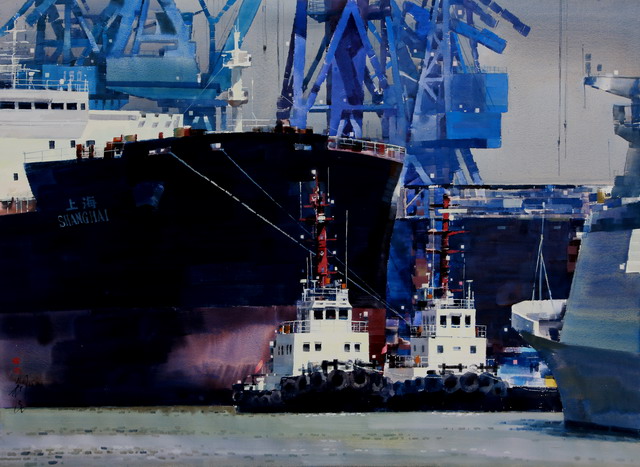 李利民水粉画《梦启海上》