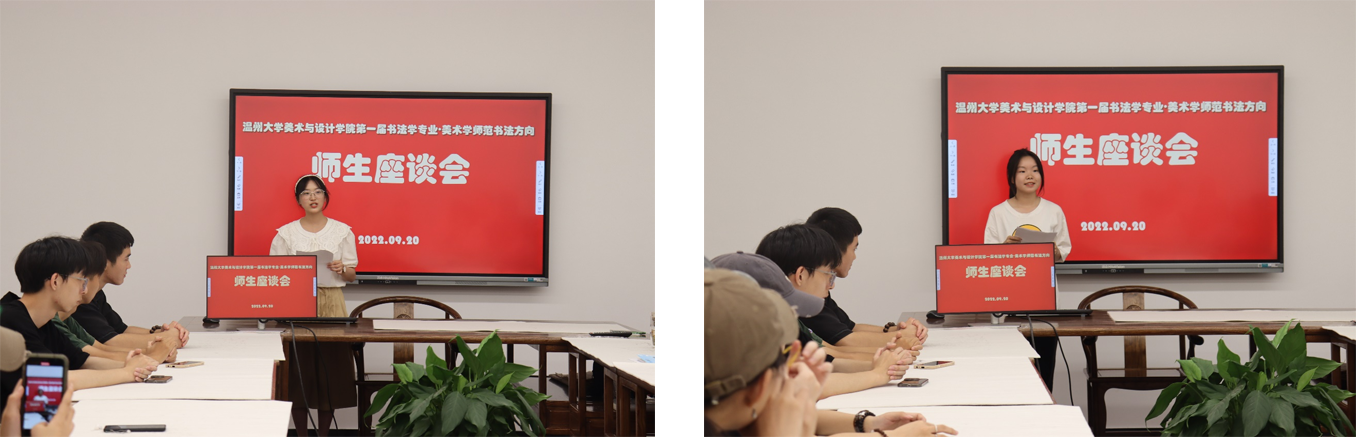 9月20日下午,永利yl23411官网首届书法学专业·美术学(师范)书法方向师生见面会在布置一新的书法专业教室隆重举行。经理谢子静,副经理胡文超、顾任飞,副书记叶如芳,教学科科长黄呼尔励,美术与书法系主任陈旭海,教师团队的专家学者以及书法教研室全体专任教师出席会议。此次见面会由美术与书法系副主任楼晓勉主持。 会上,谢子静经理对新生们进行了开学第一讲。她对新生们的到来表示热烈欢迎,并回顾了温州跨越千年的文脉传承,“永嘉学派”“山水诗情”的文脉根基。她强调,温大美院书法学专业的新设来之不易,不仅凝结了永利yl23411官网入口领导班子的殷殷关切和公司领导班子的拳拳重托,更离不开新专业申报小组全体专家教授的辛勤付出。她希望,书法学专业依托美术学(师范)办学基础,借助温州书画名城的文化资源及高等教育专业区域布局优势,以此为开端,将书法学专业越办越好。新的学期,我们迎来了三位新教师;新的教室,我们迎来了新的同学;马上我们将迎来属于美术公司的新美术馆。教学团队、教育资源、教学平台都已经准备就绪,她希望,同学们能在永利yl23411官网入口美术公司开启属于自己的华美篇章,不负梦想、终得圆满。同时,她对同学们提出三点希望:第一,学会生活。新的环境带来了新的生活模式,要调整自己,尽快适应老员工活。第二,学会与人相处。合作与交流是老员工活乃至社会生活的必要能力,要注重这方面能力的培养,才能更好地生活。第三,学会学习。学习要有目标才不会盲目,要有规划才能进步。 书法学专业负责人朱国平教授向同学们分享了书法学专业申报及建设的过程,并强调了第一届本科生的价值意义及责任担当,展望了书法学蓬勃的发展形势,提出了师生共同努力,一起来描绘永利yl23411官网入口书法学“第一”的蓝图。 会上,20级美术学(师范)书法方向员工代表詹潇娴发言。她提出了字、笔、心三者合一的见解,分享了对书法的热爱,希望能在之后的专业学习中给学弟学妹们做好榜样,相互扶持,共同进步。22级书法学专业新生代表王怡菲发言。她分享了对老员工活的感受和期望,表达了继承公司优良传统,脚踏实地,坚守使命,共同书写温大书法学历史,成就专业学科发展的决心。 见面会结束后,教师团队的专家学者和书法教研室全体专任教师还与同学们进行了交流座谈,分享了各自在学书过程中的经验与思考。