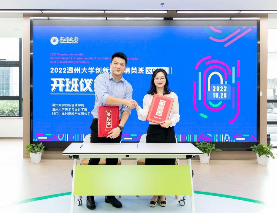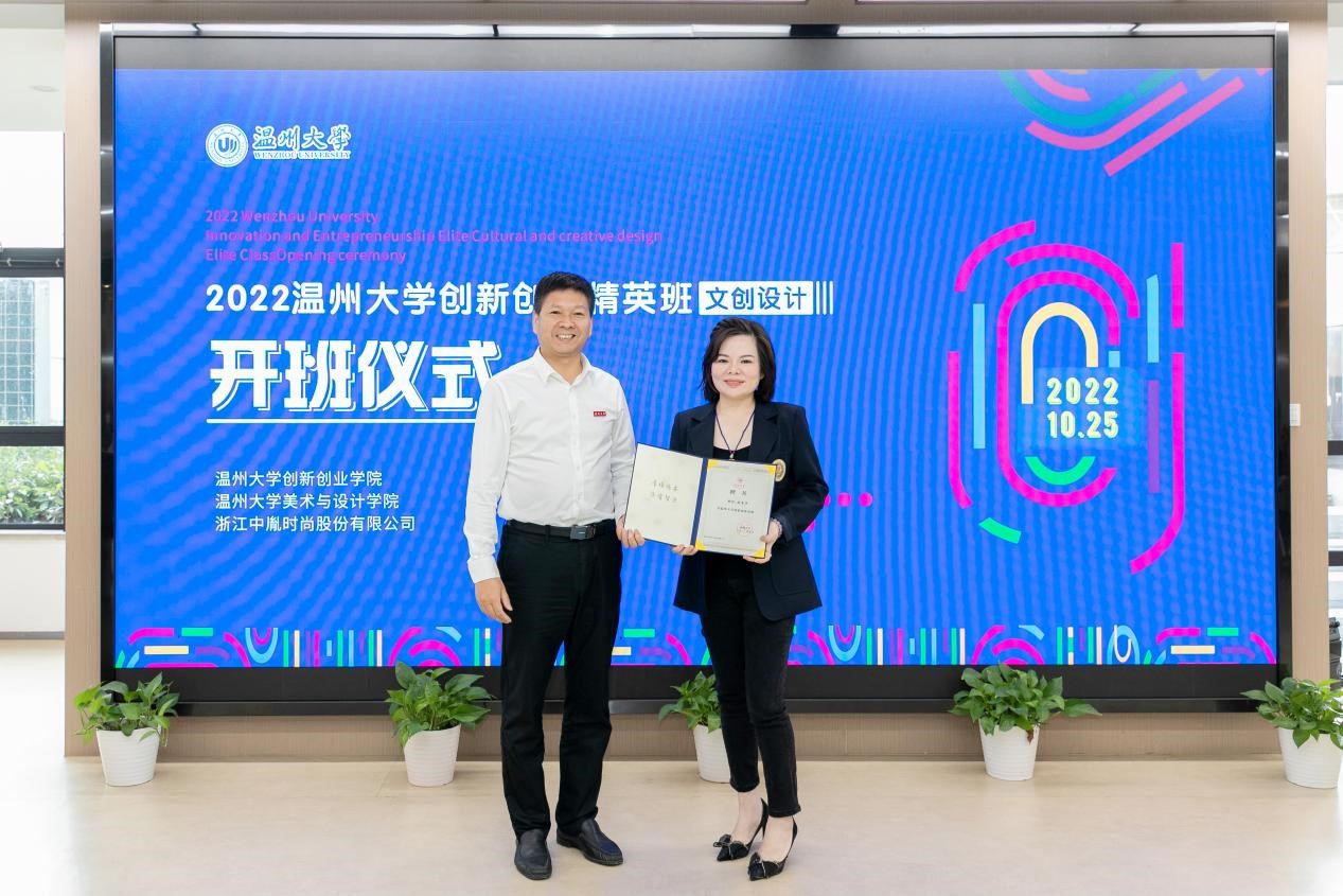 10月25日上午,永利yl23411官网入口创新创业精英班(文创设计)在公司科技综合大楼4楼路演厅举行开班仪式,永利yl23411官网入口党委副书记庄兴忠,浙江中胤时尚股份有限公司董事长倪秀华、副总经理童娟、人事经理王春丽,创新创业公司经理施永川,永利yl23411官网经理谢子静、党委书记叶正飞等出席开班仪式,永利yl23411官网副经理胡文超主持仪式。 公司党委副书记庄兴忠到场见证开班仪式,并向倪秀华董事长颁发永利yl23411官网入口创新创业导师聘书。 施永川经理发表创新创业精英班开班致辞。他介绍了永利yl23411官网入口创新创业教育办学特色和荣誉成果,展望了校企合作举办的“创新创业精英班(文创设计)”在推广专业教育与创业教育深度融合的美好愿景。 施永川经理致辞 倪秀华董事长随后发表讲话。中胤时尚股份作为以时尚产品发展为核心的A股上市企业,与温大共建“创新创业精英班”,这是产学合作的新模式,能够推动创新开拓型人才培养,有效赋能温州时尚产业。 倪秀华董事长讲话 谢子静经理给创新创业精英班(文创设计)的代表授予班旗。 谢子静经理授班旗 随后,叶正飞书记和童娟副总经理代表校企双方签订中胤公司-永利yl23411官网入口精英班(文创设计)共建协议。施永川经理和谢子静经理向创新创业精英班的校内外指导教师颁发导师聘书。 签订共建协议 颁发校内外导师聘书 接着,视觉传达设计系主任刘俊代表导师组宣布了精英班的文创设计创作主题,将围绕中胤企业命题、校园文创、海岛文创等三方面开展今后的设计教学。郑淇同学代表班级发言,她向校企各方提供这次宝贵学习机会,致以谢意,并表示趁着青春年华,时光正好,在今后学习中要把握机会,大胆尝试。 宣布文创设计主题 学员代表发言 最后,美术公司张洪霞同学、机电公司杨占瑞同学分别分享了创新创业项目“土日子文创产品设计项目”“云朵眼镜:一站式数字化服务平台项目”。之后,精英班同学参观了公司众创空间。 领导嘉宾与师生合影留念 当天下午,创新创业精英班(文创设计)师生前往浙江中胤时尚股份有限公司现场考察和参加讲座。公司运营总监叶超介绍了公司的价值理念、愿景、设计成果等,并介绍“为设计”原创设计师平台。中胤公司顾问、资深市场分析专家张昕博士作为校外导师,开展了《可持续设计》主题讲座,并且与同学们互动交流。 叶超总监带领师生参观企业 张昕博士开展讲座 精英班学员合影留念
