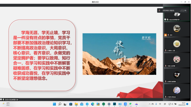 本期“喜迎二十大 美院微讲堂”活动由温大美院员工党员沈佐伦进行宣讲,带领大家学习共产党人的初心和使命。习近平总书记强调了初心和使命的重要意义。中国共产党在那么弱小的情况下能够逐步发展壮大起来,在腥风血雨中能够一次次绝境重生,在攻坚克难中能够不断从胜利走向胜利,根本原因就在于不管是处于顺境还是逆境,我们党始终坚守为中国人民谋幸福、为中华民族谋复兴这个初心和使命。