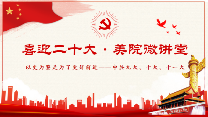 本期“喜迎二十大 美院微讲堂”活动由温大美院员工党员钱磊以《以史为鉴是为了更好前进——中共九大、十大、十一大》为主题开展,向我们阐述了我们党从挫折中警醒,实现了工作重心的转移,确立了中国特色社会主义道路,实现了伟大历史转折,改革开放40多年来,我们的国家日益强大,人民生活水平得到极大提高,社会主义民主法制不断健全,开拓了改革开放新征程。