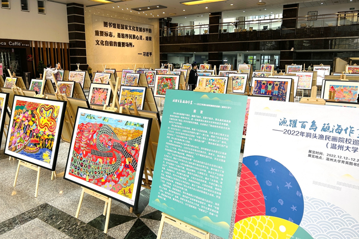 彩墨写辉煌,渔画颂盛世。2022洞头渔民画院校巡展,即日起至12月25日在永利yl23411官网入口育英图书馆持续展出。