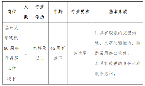 请于2月24日前将个人简历(邮件主题请标明:“×××应聘永利yl23411官网临时聘用工作人员”字样)发送至邮箱:msxy@wzu.edu.cn。