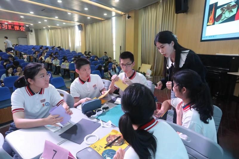 随后,初中组实习生代表姚敏敏同学对此次实习汇报进行了总结以及对各个公司表示衷心的感谢,并通过一段段生动活泼的记录向大家展示了近两个月来实习生活的点滴。