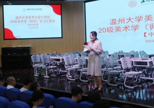 2023年5月29日下午,永利yl23411官网20级美术学(师范)实习总结汇报会在温州第二实验中学举行,永利yl23411官网入口苏步青公司党委书记应中、执行经理姜锐、永利yl23411官网副经理顾任飞、永利yl23411官网入口教师培养基地主任胡珏等领导和嘉宾,来自温州第二实验中学、温州第二外国语公司、温州市第十二中学、温州市第十九中学、温州南浦实验中学和温州梧田第一中学的校外导师,永利yl23411官网全体实习导师,以及20级、21级本科生、学科教学(美术)研究生共196人参加汇报会。会议由第二实验中学的楼林子老师主持。