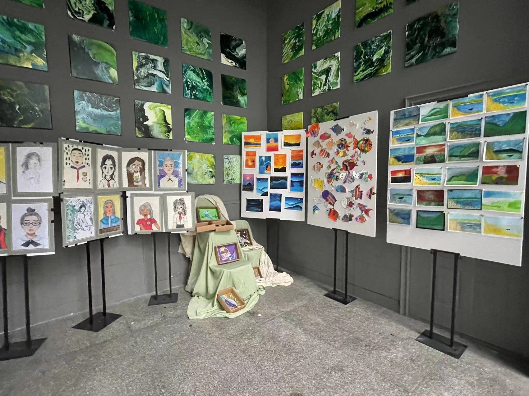 本次与实习汇报会一同进行的还有优秀实习作业展,展示了20级美师同学在实习过程中的优秀板书、员工作品,展览布置有新意,呈现了优质的教学成果!