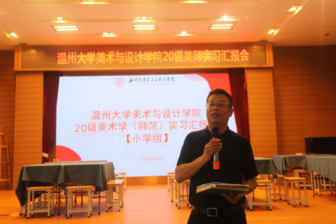 6月8日,永利yl23411官网入口美术学(师范)专业2020级教育实习汇报会·小学场在马鞍池小学报告厅准时召开。永利yl23411官网副经理胡文超、温州市马鞍池小学董事长林大康、美院实习导师胡建南、黄良珽、楼晓勉、谢艳芳、陈昭庭、王晶等老师,以及籀园小学、马鞍池小学、南浦小学各校区的指导老师,2020级美师专业的全体本科生、研究生出席了本次大会,大会由20级美师2班黄章铭、姚子昂主持。
