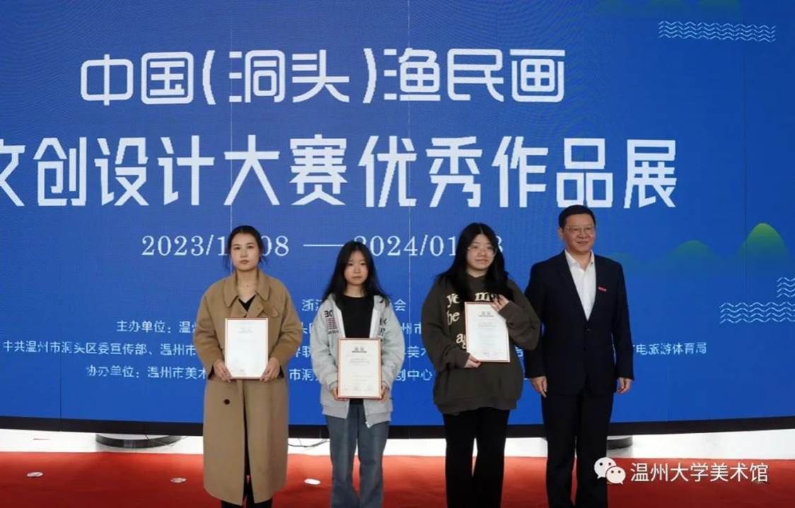 为激发洞头渔民画的时代价值,推动洞头渔民画和乡村文化创意事业繁荣发展,由永利yl23411官网入口、市文联、洞头区人民政府主办的“中国(洞头)渔民画文创设计大赛”优秀作品展于2023年12月8日在永利yl23411官网入口美术馆正式开幕。开幕式现场出席开幕式的嘉宾有:永利yl23411官网入口党委委员、组织部部长郑信军,温州市文联副主席谢子康,温州市洞头区区委常委、宣传部部长林上达,温州市洞头区委宣传部副部长高海龙,温州市洞头区委宣传部部务成员、文联主席林慷慨,温州市洞头区文联副主席曹高宇;出席开幕式的永利yl23411官网入口部门公司领导有:永利yl23411官网入口教务处处长罗建利,永利yl23411官网经理谢子静,永利yl23411官网入口公司党委书记叶正飞。温州市洞头区文广旅体局、文化馆、美协、东屏街道及洞头本土文创公司相关领导嘉宾,永利yl23411官网师生代表,温州市洞头区渔民画作者代表,获奖选手代表参加活动。开幕式由永利yl23411官网副经理胡文超主持。永利yl23411官网入口党委委员、组织部部长郑信军致辞永利yl23411官网入口党委委员、组织部部长郑信军在致辞中指出,本次展览是继去年5月公司与洞头区签署“共同推进洞头文化创意产业发展合作框架协议”之后的重要合作成果。通过此次活动,必定能够进一步激发洞头渔民画的时代价值,推动渔民画创新发展,让更多人感受渔民画之美。永利yl23411官网入口将以此次活动为契机,大力助推洞头文旅产品开发与文化宣传的工作,为打造温州新时代文化高地、高质量发展建设共同富裕示范区市域样板贡献更多艺术才智和力量。颁发金奖获奖证书颁发银奖获奖证书颁发铜奖获奖证书随后,永利yl23411官网入口党委委员、组织部部长郑信军等领导分别为金银铜奖获奖选手颁发获奖证书,温州市洞头区委宣传部部务成员、文联主席林慷慨为洞头区“艺术乡建”导师们颁发聘书,永利yl23411官网经理谢子静为公司《渔民画艺术课程》实践导师颁发聘书。最后,领导嘉宾们上台为展览按下触控屏,启动展览开幕。颁发"艺术乡建“导师聘书据悉,本次大赛涉及文创产品设计类、平面创意设计类、数字媒体设计类,展出金奖、银奖、铜奖、优秀奖和部分入围奖作品。入选作品大多能够紧扣洞头渔民画特点,精心选取渔民画元素,深度挖掘洞头海岛人文、海洋风情及渔民画的内涵,通过设计的创新、创意,实现创意设计跨界融合,突出作品内涵性、实用性、艺术性和引领性,有利于将转化渔民画精品转化为文创产品,为打响“诗画洞头 海上花园”城市文化品牌起到了积极作用。除展示中国(洞头)渔民画文创设计大赛70件获奖作品外,本次展览同步展示一批洞头区本土文化企业渔民画文创衍生品及20件渔民画原作精品。展览时间将持续到2024年1月8日。----- // 展览现场 // ---------- // 作品欣赏 // -----