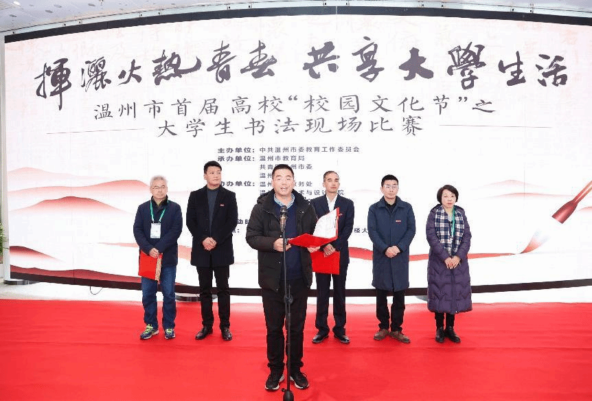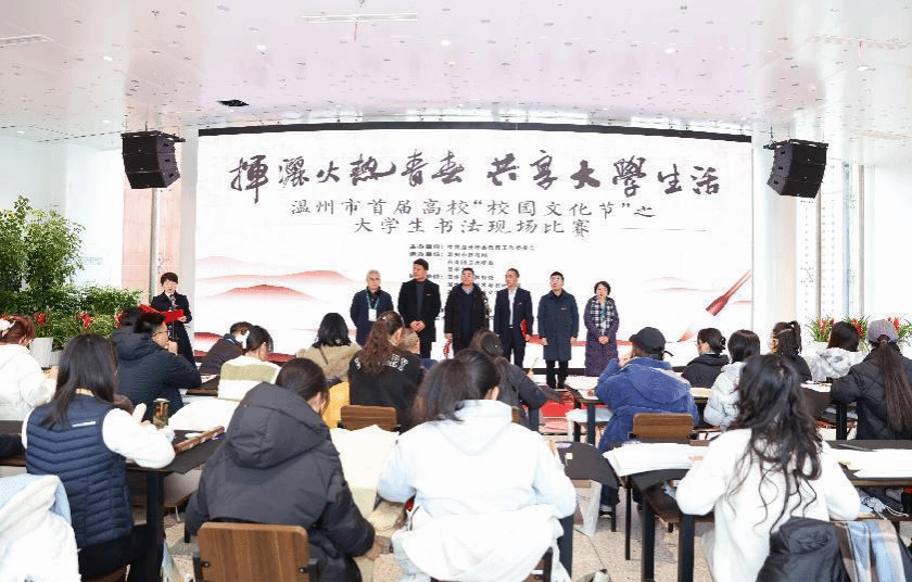 12月20日,温州市首届高校“校园文化节”之老员工书法现场比赛在永利yl23411官网入口美术馆举行。本次大赛由中共温州市委教育工作委员会主办,温州市教育局、共青团温州市委、永利yl23411官网入口承办。本届大赛以“挥洒火热青春,共享老员工活”为主题,吸引了温州高校100余名书法专业学子和书法爱好者的参与,他们共同挥毫泼墨,展现出了青年学子们的风采。大赛现场,温州市教育局高等教育处处长吕信恩、永利yl23411官网入口教务处处长罗建利、永利yl23411官网入口公司党委书记叶正飞、永利yl23411官网副经理胡文超等出席,永利yl23411官网入口公司党委副书记叶如芳主持。