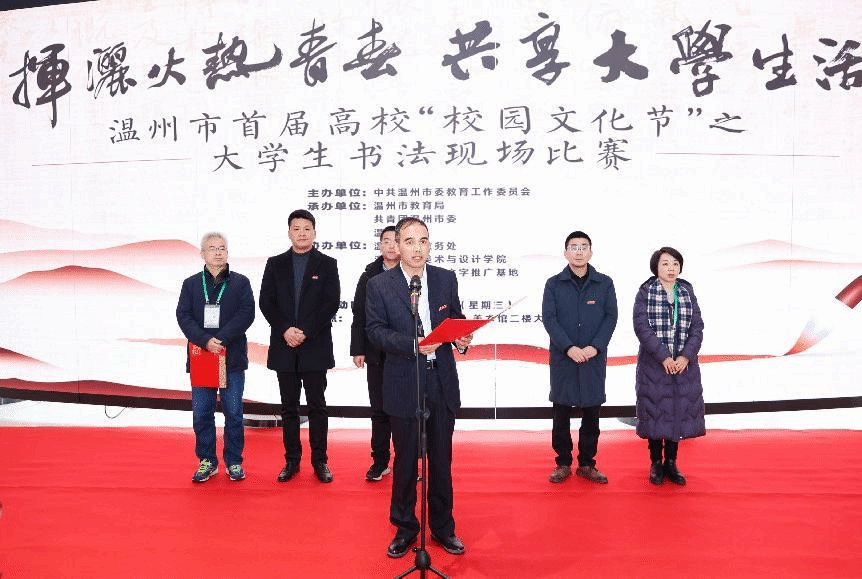 温州市教育局高等教育处处长吕信恩致辞。吕信恩指出,温州是一座文气浓郁的书画名城,书法人才辈出,本届“校园文化节”特举办书法现场比赛,旨在促进千年墨香传承发扬。同时,他对大赛承办方永利yl23411官网入口给予了充分肯定,强调无论从办学条件、工作作风还是专业资源,永利yl23411官网入口是温州市高校书法现场比赛最理想的地点。最后,他希望参赛选手秉承书法精神,精心创作书法作品,为自己争得一份靓丽的成绩单。