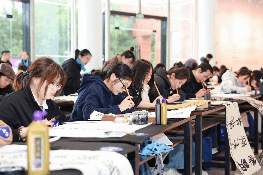 本次比赛分为专业组和非专业组。比赛现场,参赛选手们用心书写每一个字,用笔墨描绘出自己的情感和思考,展示了他们专注的书法态度和炽热的创作热情。