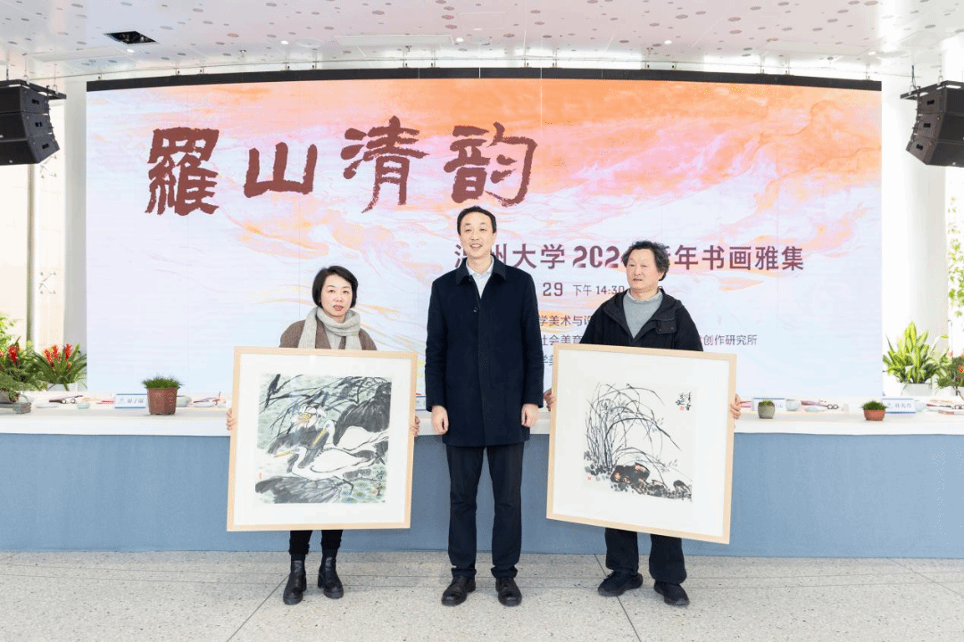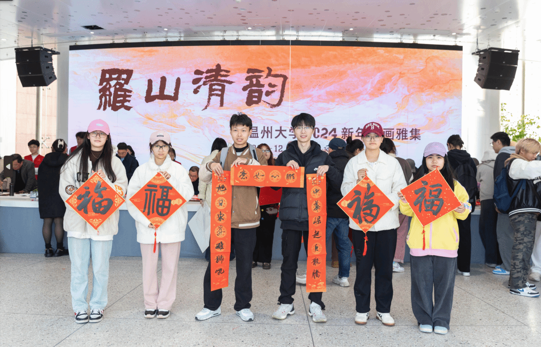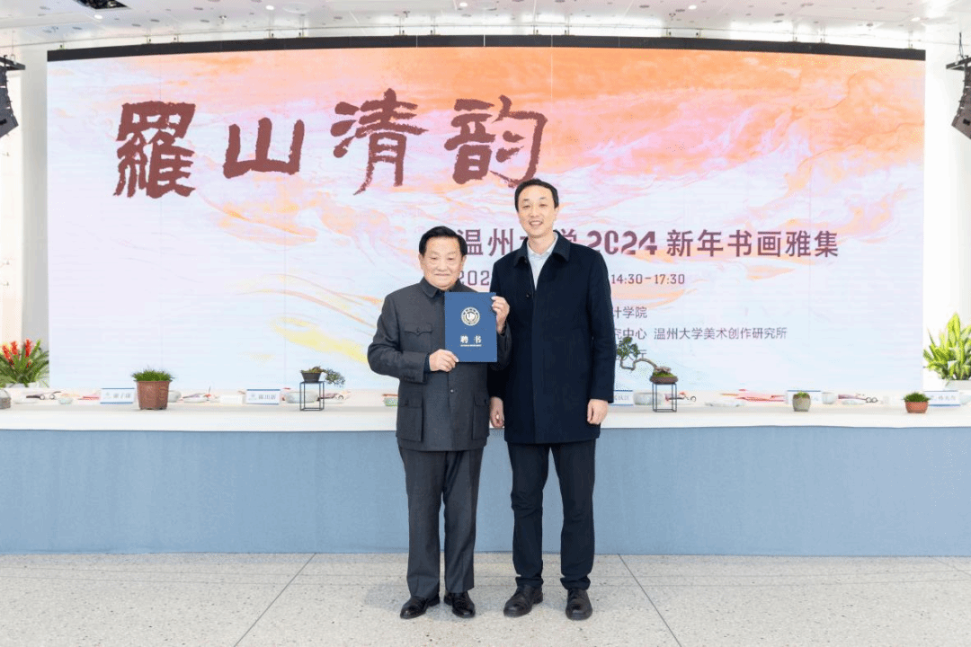 挥毫泼墨添锦绣,翰墨丹青绘新年。2023年12月29日下午,“罗山清韵——永利yl23411官网入口2024新年书画雅集”活动在永利yl23411官网入口美术馆隆重举办。本次活动由公司主办,温州市社会美育研究中心和永利yl23411官网入口美术创作研究所共同承办,24 位温州书画名家和公司美术、书法专业教师挥毫泼墨,现场创作书法、绘画作品,美术馆外张灯结彩,现场一片喜气祥和。 永利yl23411官网入口党委书记张健、温州市文联副主席谢子康、温州美术馆副馆长张真恺、人民美术出版社原副主编孟庆江、原温州师范公司美术系主任张如元、温州市美术家协会顾问孙光奇、温州市书法家协会顾问汪廷汉、温州书法家协会顾问陈出新、温州书法家协会顾问陈树冈、政协雁荡诗书画院顾问尚文光、永利yl23411官网特聘教授金松、温州市鹿城区美术家协会副主席阿岛、温州市书法家协会主席团委员王天津、公司班子全体成员和公司书法、绘画专业教师出席了雅集,各部门、公司师生代表、温大附幼小朋友以及职工代表共100多人参加了活动。雅集开幕式由公司经理谢子静主持。 活动正式开始前由温州音乐家协会古琴协会副会长谷雪艳女士为现场嘉宾和师生弹奏了古琴《流水》片段,在悠悠琴音中雅集活动拉开序幕。 首先举行了作品捐赠仪式。孟庆江先生将其创作的《徐定超肖像画》捐赠给永利yl23411官网入口美术馆。公司党委书记张健为孟庆江先生颁发客座教授聘书。原温州师范公司美术系首届系主任叶玉昶先生将其创作的2幅花鸟画精品捐赠美术馆。 随后,在现场师生和嘉宾的共同见证下,张健书记、张如元先生、孟庆江先生和谢子静经理共同为新年雅集启幕。 “学者必以规矩,焕乎其有文章”,美术馆门厅悬挂的此幅对联是张如元先生为本次雅集活动专门创作。启幕仪式后,张健书记为师生赠送了福字和春联,以表达对师生们的新年美好祝愿。 书画嘉宾挥毫泼墨,现场创作了120多幅春联和福字送给前来参加活动的师生,为他们送上浓浓的新春祝福。前来领取福字和春联的师生络绎不绝,现场气氛格外热烈,为冬日校园增添了浓浓的年味。 新春送福环节结束后进行了迎新雅集,参加雅集的书画嘉宾以书画会友,提笔落墨,创作热情不减,并将现场创作的作品赠与温州大学美术馆收藏。 本次新春书画雅集是公司获批温州市社会美育研究中心后开展的首场活动,得到全校各部门及社会广泛关注,使全校师生更深切的感受到传统文化的魅力,为师生们传递了美的力量,同时也增强了高校与地方在美育工作建设中的互动,发挥高校在美育工作中的作用。