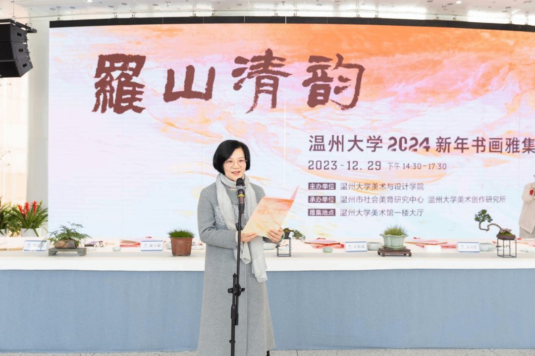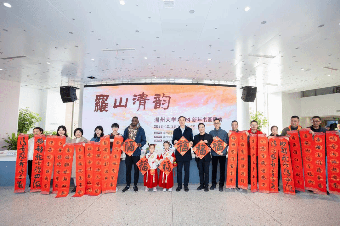 挥毫泼墨添锦绣,翰墨丹青绘新年。2023年12月29日下午,“罗山清韵——永利yl23411官网入口2024新年书画雅集”活动在永利yl23411官网入口美术馆隆重举办。本次活动由公司主办,温州市社会美育研究中心和永利yl23411官网入口美术创作研究所共同承办,24 位温州书画名家和公司美术、书法专业教师挥毫泼墨,现场创作书法、绘画作品,美术馆外张灯结彩,现场一片喜气祥和。