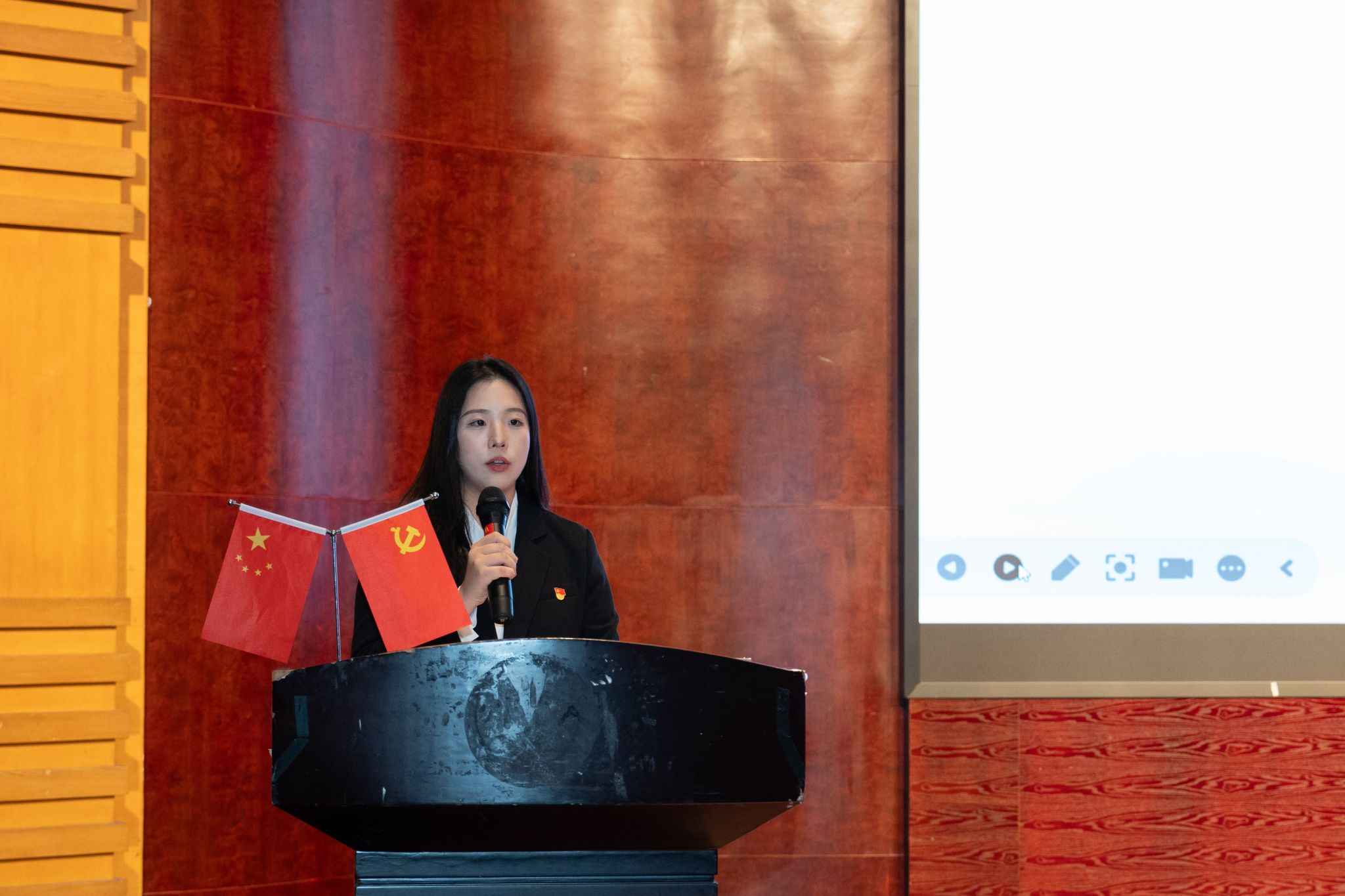 永利yl23411官网本科生第二党支部李琳同志作为员工代表进行发言,并代表全体学员作出庄严承诺:遵守纪律、积极学习,将思想追求与实际行动有机结合起来,在行动中领悟和贯彻党的思想,积极向党组织靠近。