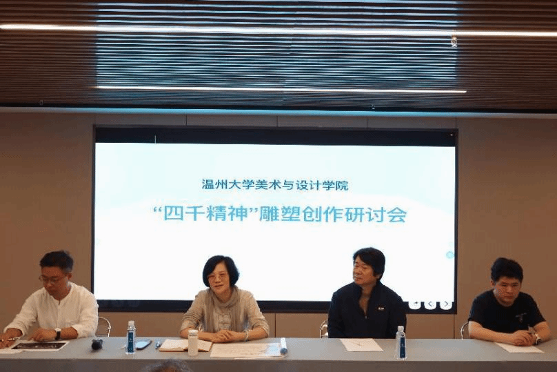 会上,谢子静经理对“四千精神”雕塑的创作背景、雕塑故事进行详细介绍,程育全大师对雕塑予以充分肯定。程大师表示,“四千精神”是对温州,乃至于浙江民营经济发展历程的高度概括。雕塑中所讲述的历史故事让程大师回忆起自己当年的奋斗历程,他16岁学艺打铜行担四方,24岁起与父亲一起从小小的家庭工坊起步,坚持到如今的每一步画面都历历在目,自身也是“四千精神”的历经者。随后,程育全大师与各位主创人员就雕塑的后期工艺、制作细节深入地进行了研讨,并表示十分期待雕塑作品早日落地。