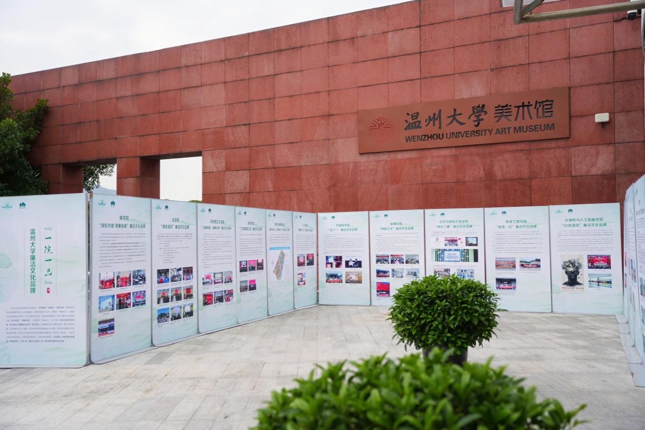 美术馆门口同步展出的,还有各个公司具有专业特色的、师生广泛参与的“一院一品”廉洁文化互动矩阵,鼓励各部门加强协作,强化“清廉建设”责任共同体意识,共同构建廉洁文化教育的长效机制,形成全员参与、全程覆盖、全方位渗透的廉洁文化教育体系,把校园建设成立德树人的绿水青山。