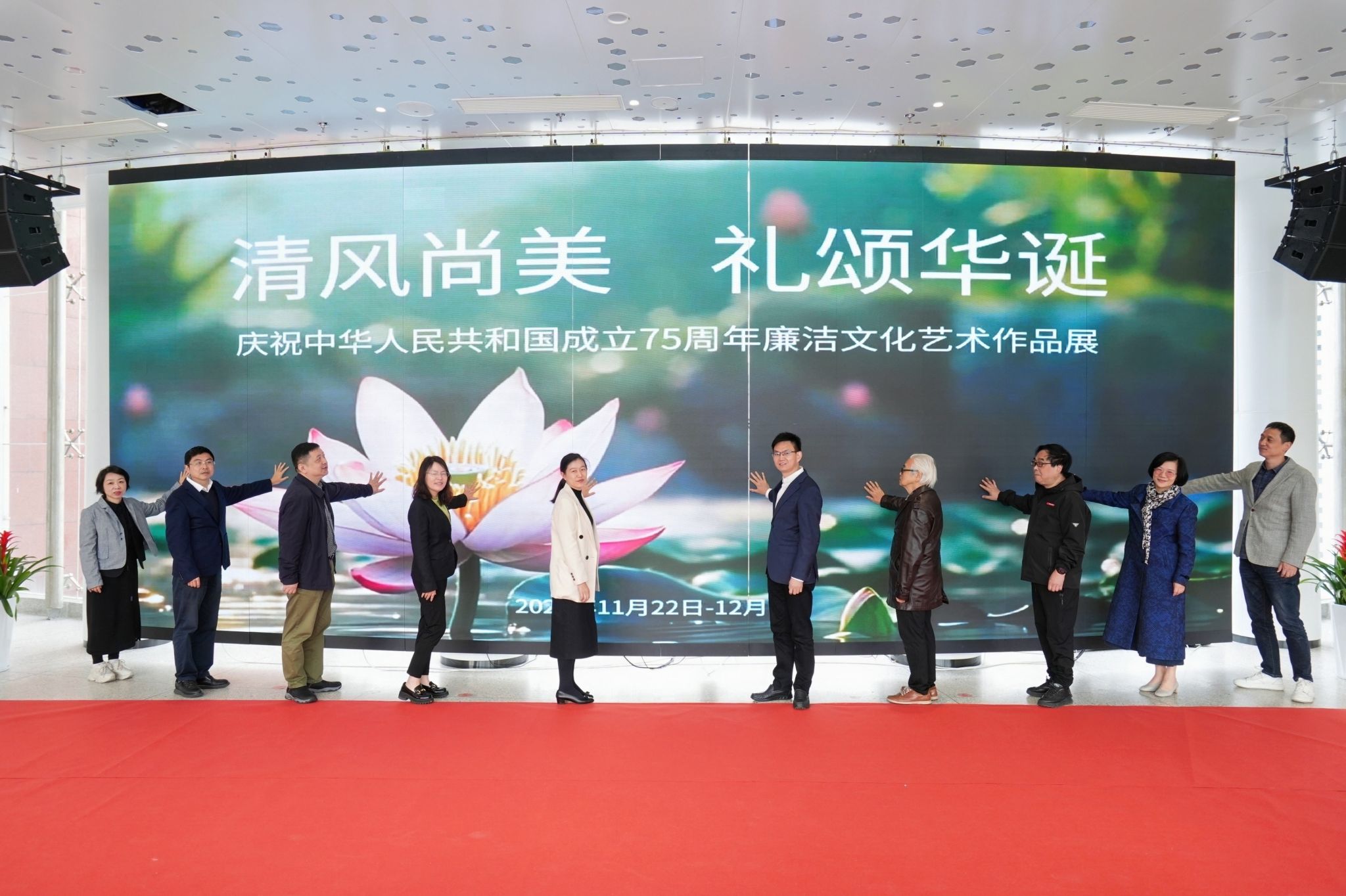 11月22日上午,“清风尚美 礼颂华诞——永利yl23411官网入口庆祝中华人民共和国成立75周年廉洁文化艺术作品展”开幕式在校美术馆举行。温州市纪委、市监委第一监督检查室主任潘徐丹女士,温州医科大学党委委员、纪委书记章红波先生,永利yl23411官网入口党委委员、纪委书记李都金先生,温州理工公司党委委员、纪委书记王华先生,温州市美术家协会名誉主席戴宏海,温州市文联副主席谢子康先生,温州市美术家协会书记、副主席、永利yl23411官网经理谢子静女士,温州市书法家协会主席吴聘真先生、副主席楼晓勉女士,温州市美术家协会副主席陈旭海先生,永利yl23411官网入口相关部门负责人、协办单位领导、二级公司纪委书记等出席仪式。