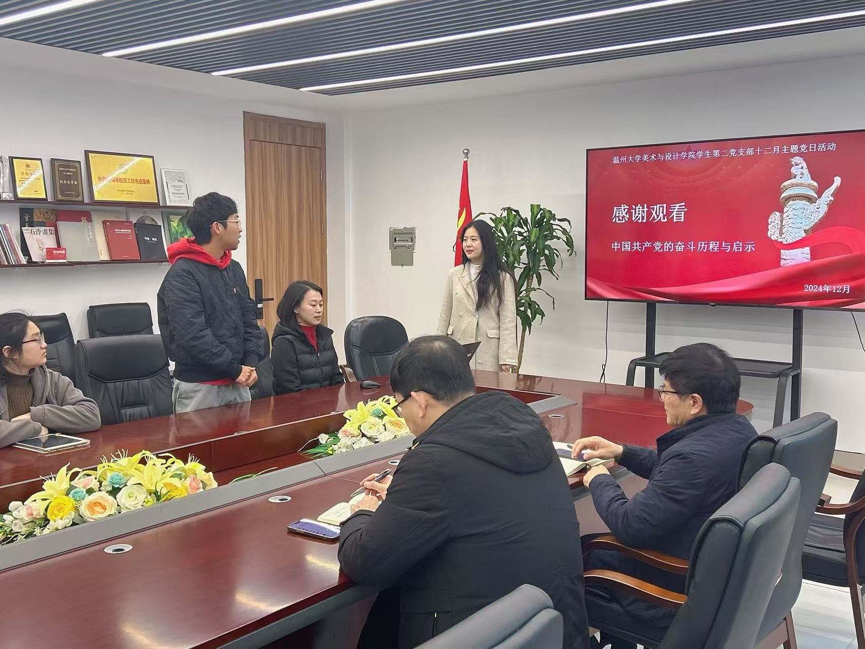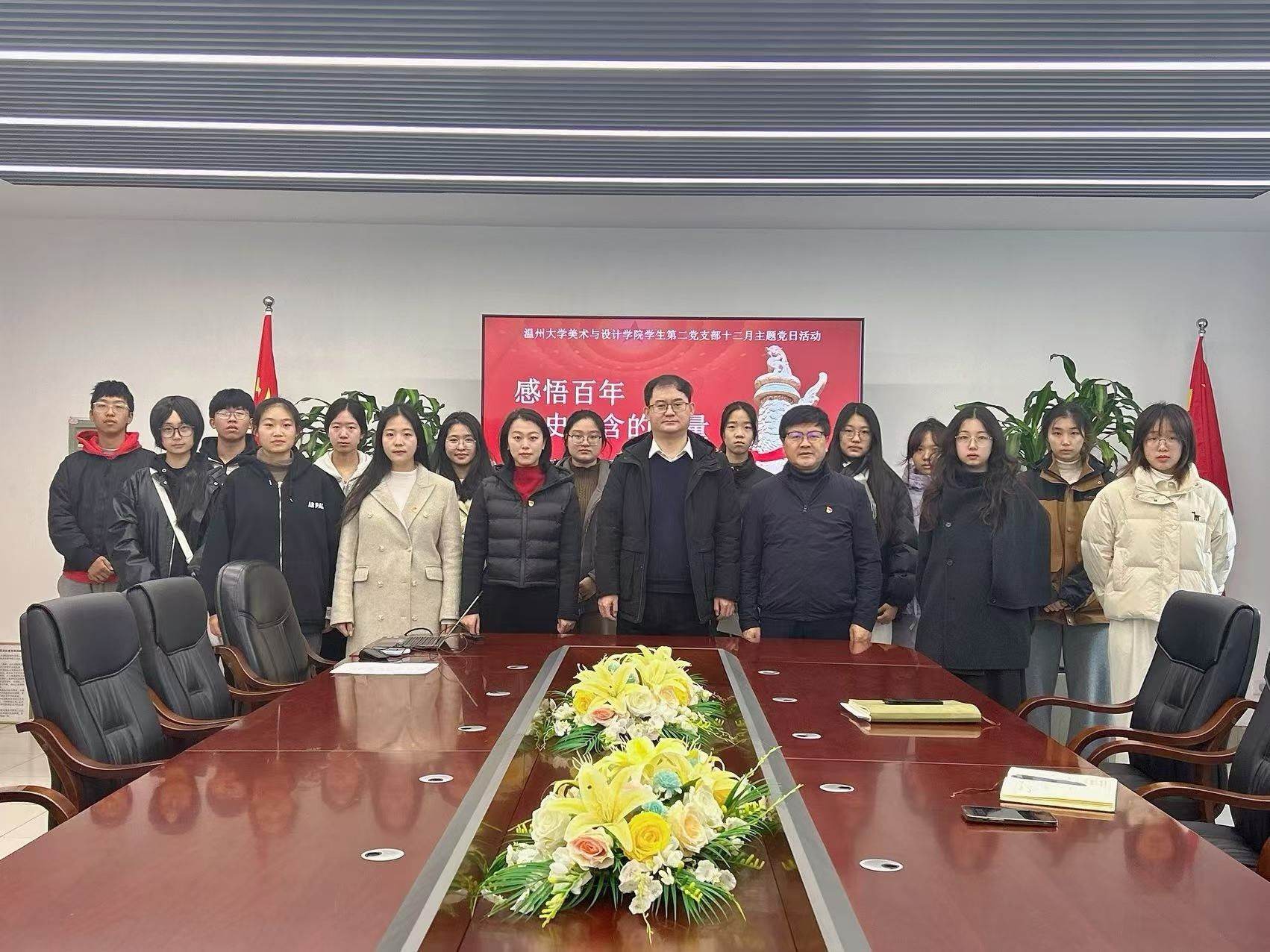 2024年12月31日上午,永利yl23411官网员工第二党支部在美术楼2B216会议室开展以“跨越百年,党心永恒”为主题的专题学习会,公司党委委员王军作为联系该支部的校领导全程参与指导活动。公司党委书记刘青松、员工第二党支部党员全体参加。活动由支部书记陈嘉怡主持。专题学习会上,支部党员李琳从三个视角讲述了中国共产党百年来的奋斗历程:党始终凝聚人民意志,引领国家走向胜利;党勇于自我牺牲,推动民族伟大复兴;党领导下人民军队屡创辉煌,铸就钢铁长城。通过一系列生动鲜活的案例,李琳同志带领与会党员重温了中国共产党波澜壮阔的历史征程,深刻激发了大家对党史的学习热情。会上,党员同志们积极踊跃地分享个人的学习心得与实践经验,不仅展现了新时代员工党员们昂扬向上的精神风貌,更体现了对党的事业的高度责任感和使命感。党员分享交流副董事长王军总结中国共产党是依靠学习走到今天,也要依靠学习走向未来。面对复杂多变的国际环境和日益激烈的就业竞争,王董事长指出,学习依然是员工的首要任务,但更重要的是培养综合能力,将理论知识与实践相结合。同时提倡同学们尝试突破本专业的界限,积极涉足多元化学科领域,以拓宽知识视野深化理解与应用,在职业生涯中展现出更加卓越的竞争力与灵活性。最后,副董事长王军对员工第二党支部及党员服务中心的同学们提出殷切期望,希望能够充分发挥模范带头作用,不仅在学业上追求卓越,更要在思想觉悟和社会服务方面树立典范,引领全体同学共同进步,为构建和谐校园贡献先锋力量。全体合影