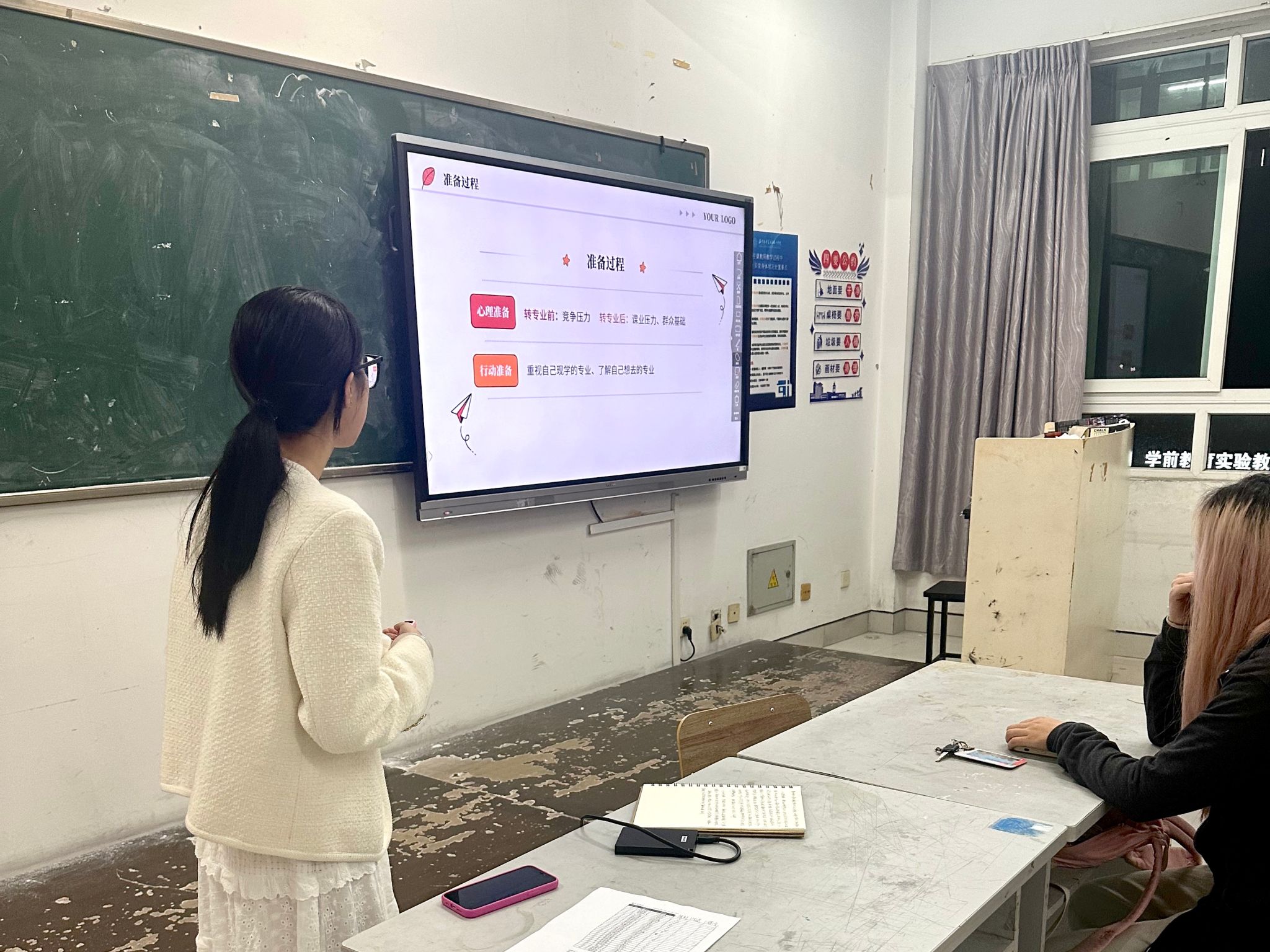 2024年10月20日,21美师3班的张青青同学进行了转专业经验分享。张青青同学以个人经历为引,详述转专业准备要点,精准解读相关政策,深入阐释了对转专业的认知与见解,并着重指出心理建设与实际行动在这一过程中的关键作用。对有转专业意向的同学来说,本次分享无疑提供了宝贵的参考和启示。张青青同学对自身理想的重视和追求也激励着在场的每位同学,探索属于自己的学术新领域,书写青春奋斗的新篇章。