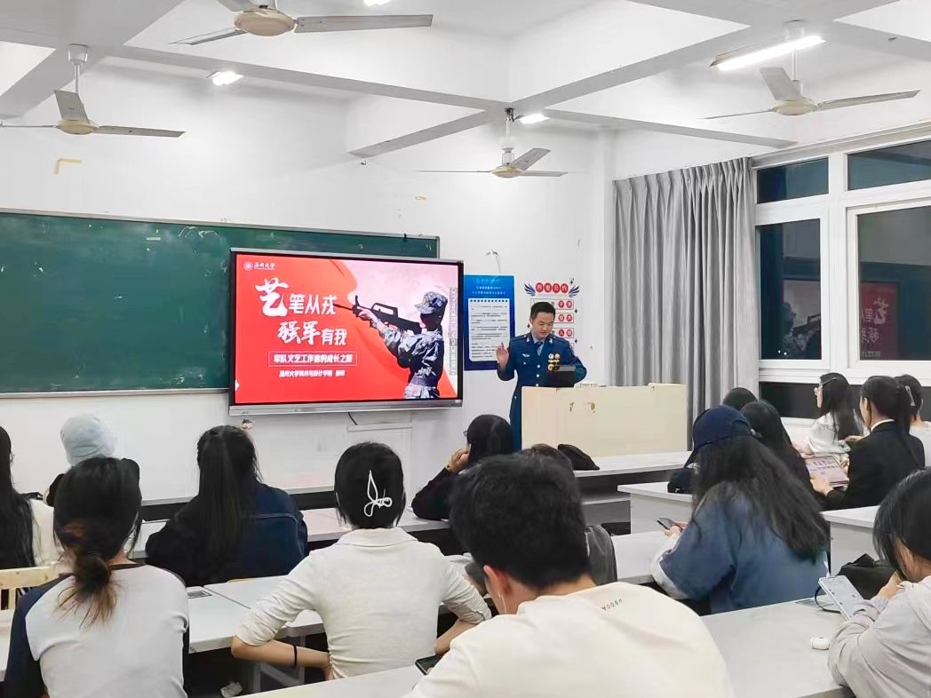 2024年10月27日,22美师3班的崔帅同学进行了军旅生活经验分享。崔帅同学讲述了自己入伍参军的初衷,为同学们分享了服役期间的收获与成长。通过这次分享,同学们深刻领略到了军人高度的纪律性、严格的组织性和强烈的使命感。这些宝贵的精神财富,为大家树立了学习的典范,激发了同学们在日常生活和未来职业生涯中勇于担当、追求卓越的决心与勇气。