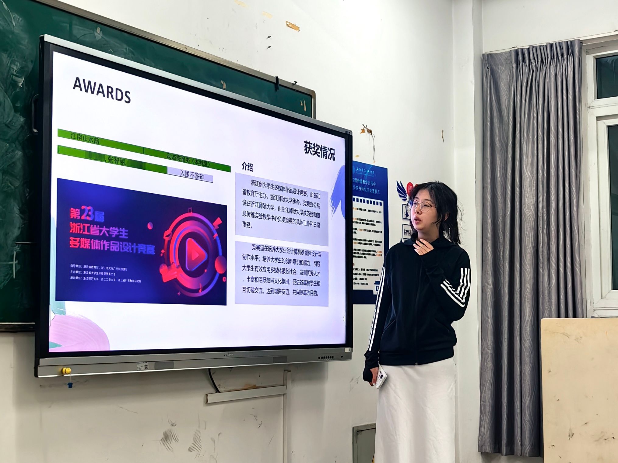 2024年9月28日,22视传1班的张智丽同学进行了竞赛经验分享。围绕竞赛相关事宜,张智丽同学就赛前准备与作品准备两个阶段提出几点注意事项,并着重于团队协作方面分享了自己的经验和建议。通过本次活动,同学们对竞赛流程和规则有了更深入地了解,为参与竞赛补充了理论知识,也为后续创作出更多优秀作品提供了经验支撑。