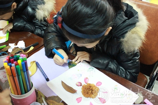 2017年3月18日,温大永利yl23411官网"艺家人"青年志愿者协会成员和志愿者们共同前往梅泉社区文化礼堂,进行了以“有趣的叶子”为主题的手工DIY活动。