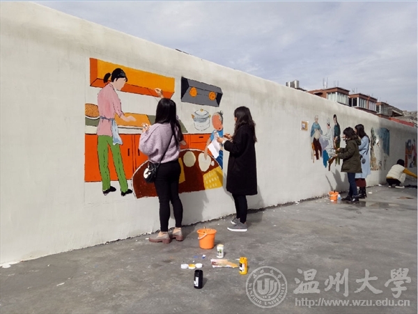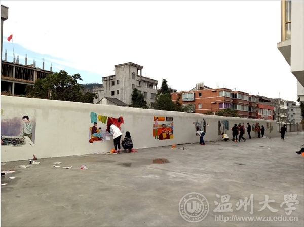11月27日,永利yl23411官网“艺家人”青年志愿者协会在杨岙村举办了“新青年下乡活动”。活动以墙绘的方式绘制新版“二十四孝”文化长廊,在改造环境的同时宣传中国传统的孝道文化。 墙绘过程中,不时有来往的村民驻足观望。志愿者们分组合作、分工明确:有的负责构图,用单色笔在墙体上勾勒出清晰轮廓;有的负责调色,那些看似单一的颜色在志愿者们的手中慢慢的变成了斑斓的颜色;有的负责涂色,拿起各式画笔在墙体上细致涂刷,慢慢地,墙面开始生动、鲜活起来了。经过两次的精雕细琢,手绘墙体终于完成。 图/文:王伟