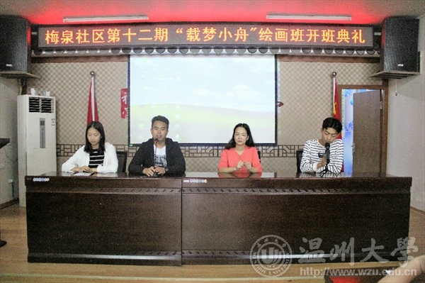 10月16日,永利yl23411官网“艺家人”青年志愿者协会“载梦小舟”梅泉支教活动在梅泉社区正式开班,青协梅泉基地负责人及温大志愿者们参加了开班仪式。