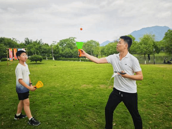 接下来每支亲子队伍手持定向地图,佩戴计时芯片,穿梭于校园的各个角落,寻找隐藏在南校区的“藏宝点”。在“拾‘色’筑塔”任务点,亲子二人需默契配合,手拉绳子末端,移动勾环将积木按“员工助力”“七彩筑塔”字样依次叠加 ;“色彩连连看”区域,孩子们和家长两两协作,专注地翻开草帽,寻找相同物品;“接‘彩’入框”游戏里,大家巧用道具,小心翼翼地将不同颜色的小球传接至指定框中……工作人员依据计时芯片记录的时间公布比赛成绩并为表现优异的队伍颁发奖励。