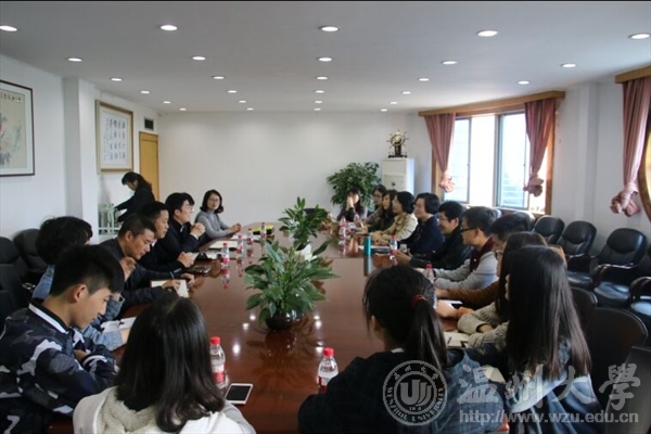 林董事长向谢子静副经理以及实习员工介绍公司情况