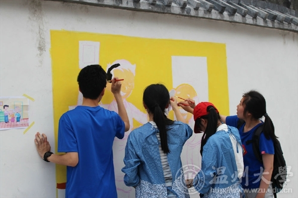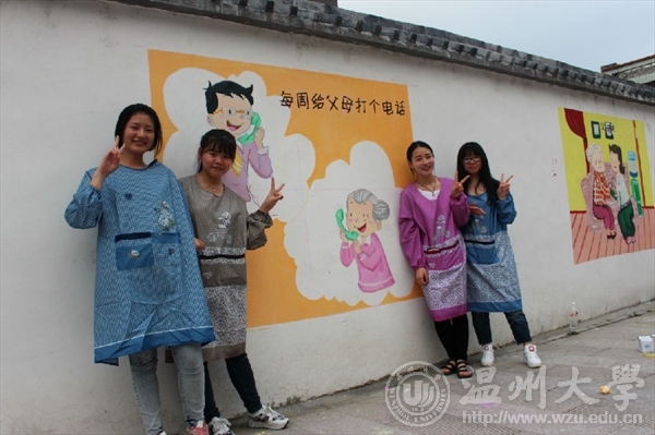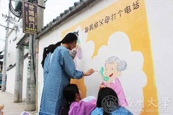 为了进一步响应与落实市委“新青年下乡”主题精神,弘扬传统孝道美德,美院志愿者们携手教师教育公司的“小老师们”一同参加了“乐清市绘二十四孝墙绘”的活动。