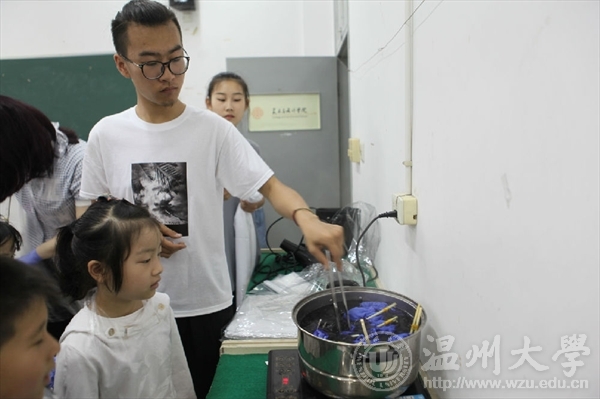 为鼓励员工创业,且即将到来的母亲节献礼,永利yl23411官网融艺优品创客空间“P73服装设计”创业团队 近日,永利yl23411官网融艺优品创客空间系列活之扎染系列活动陆续展开。本次活动由“P73服装设计”创业团队承办。5月8日来自于大南门小学的孩子和家长们来到了永利yl23411官网的设计教室,在谷佳维和徐志国同学的带领下,共同开始本期永利yl23411官网开放日活动—体验扎染为5月9日的母亲节献礼。 杨老师向大家介绍了永利yl23411官网入口美术公司印染实验室。张老师向家长孩子们介绍了“扎染”的发展历史,展示了五颜六色的扎染成品。孩子们都全神贯注的看着,还积极的向老师询问扎染的方法。扎染古称扎缬、绞缬、夹缬和染缬,是中国民间传统而独特的染色工艺。 其工艺特点是用线在被印染的织物打绞成结后,再进行印染,然后把打绞成结的线拆除的一种印染技术。它晕色丰富,变化自然,趣味无穷。更使人惊奇的是扎结每种花,即使有成千上万朵,染出后却不会有相同的出现。这种独特的艺术效果,是机械印染工艺难以达到的。 杨老师主要讲述了制作工序以及期间需要注意的问题。之后,孩子家长们就投入到实践中,谨慎地设计,小心地穿线,打结,褶皱,全心全意。不久后,陆陆续续的完成了“扎”,接着便是“染”的环节了。家长和孩子们将准备好的围巾,浸泡并且进行染色。经过一段时间的等待,在拆线解绑的瞬间,家长和孩子们都露出了欣慰的笑容。 本次扎染围巾的亲子活动便在洋溢在家长和孩子的笑脸中结束。希望孩子们能体验到生活中一花一草的不易,希望家长们能感受到孩子的创造力,也祝各位妈妈母亲节快乐为了未来继续加油!