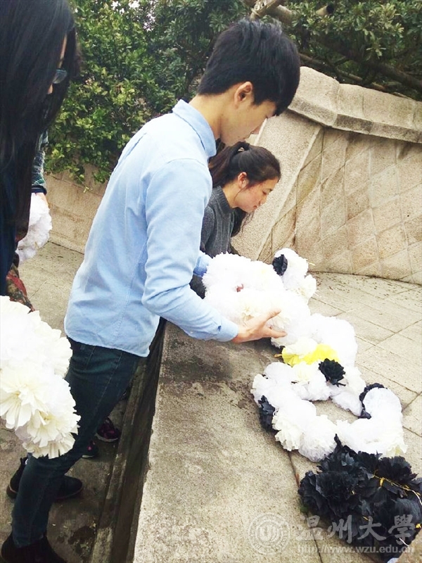 在4月1日,志愿者们一同前往黄淮墓赠上手工制作的花圈,并进行了扫墓活动。本次活动体现了美院员工的心灵手巧能力及细腻程度,同时将制作的花环赠与烈士,也为清明节的主题活动献出一份力量。