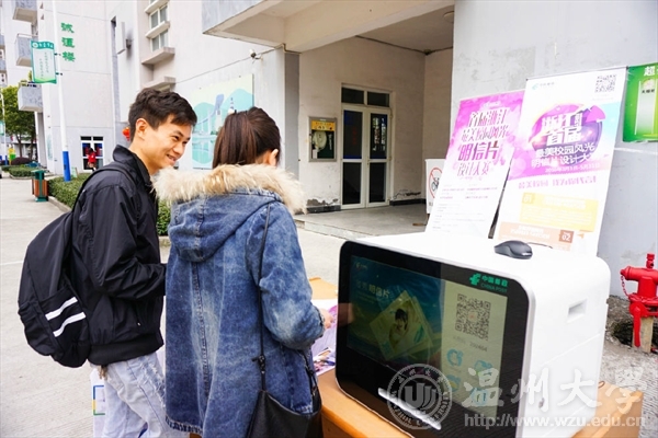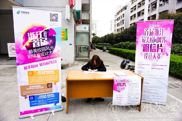 2016年3月20日,由中国邮政温州市分公司主办永利yl23411官网承办的“首届浙江最美校园风光明信片设计大赛”在A区报刊亭和E区食堂前设点宣传。本次大赛旨在传承校园文化,宣传校园形象的同时,让公司员工的专业知识与技能得到锻炼和提升。