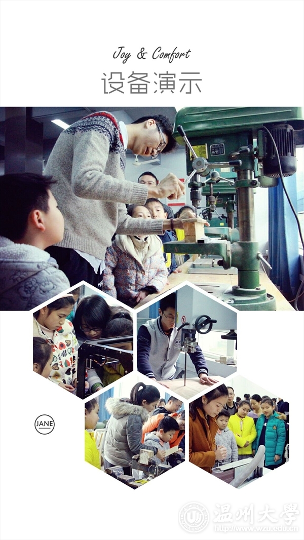 上午10点整,参与活动的家长和孩子们齐聚在永利yl23411官网1楼大厅。同学们带领着小朋友来到了产品设计班进行签到并且讲述了今天的课程内容——工造房机械的体验、参观3D打印机以及自己动手拼接小木凳。 在队员的带领下,小朋友们参观从3D打印机到钻孔机到切割机再到打磨机、精雕机等,好奇心浓厚的孩子们对这些陌生的“钢铁玩具”都充满着兴趣,尤其喜欢3D打印机,看着这个不大的机器是如何打印出一个小物件小玩具。 上午10点40分,大家结束了参观,又再次聚齐在工造房,进行第二项内容——拼接小木凳。终于到了自己动手的环节,小朋友们都迫不及待的领取了自己的零件和工具,在爸爸妈妈的帮助下,敲敲打打地拼装起小凳子。为了安全起见,每个队员也参与其中,协助完成一些难度大的步骤。 11点20分,每个小朋友在一番接、敲、拼、拧之后都完成了自己的小木凳,并且都签上了自己的名字,之后在队员们的陪同下,小朋友们亲自体验了工造房的机械。在11点50分的时候,大家在永利yl23411官网大门前留下了各自的笑脸和合影。