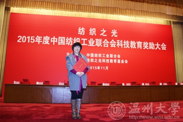 2015年11月24日,“纺织之光”2015年度中国纺织工业联合会科技教育奖励大会在北京人民大会堂隆重举行。中国纺织工业联合会、各专业协会领导,地方行业协会领导,纺织之光科技教育基金会理事以及本次会议表彰的科技工作者、企业家、院校教师与员工获奖代表及媒体嘉宾600余人出席了大会。公司魏静教授应邀出席了会议。 纺织之光2015年度中国纺织工业联合会表彰了科学技术奖、公司产品成果奖、教师特别奖、员工特别奖、创新奖、行业技术能手荣誉称号、行业技能人才培育突出贡献单位及个人。充分体现了中纺联对纺织行业科技教育工作的高度重视和对广大科技工作者、教育工作者、员工和一线技术工人的亲切关怀。希望全行业广大员工以获奖者为榜样,带动全行业创新创业的热潮,在攻坚克难中追求卓越,为建设纺织强国作出新的更大贡献。 公司魏静教授主持的《女装造型技术》课程群“四化”教学模式的探索与实践荣获2015纺织之光教学成果一等奖;陈明艳教授主持的依托区域产业的服装设计与工程专业卓越工程师人才培养模式的改革荣获二等奖。