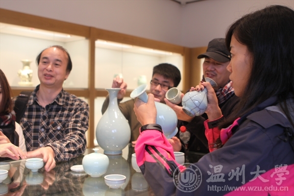 2015年10月31日、11月1日,永利yl23411官网工会组织全院教职员工赴丽水龙泉展开青瓷考察之旅,报名参加此次活动的共有40余名工会会员。当日清晨,微风斜雨,气温骤降,但仍然抵挡不住教师们踊跃参加龙泉采风之旅的高昂热情,大家早早在约定时间迫不及待地等候出发。采风之旅的第一站,是曾芹记古窑坊。“曾芹记”第七代传人曾世平接待了采风团。曾芹记龙窑始建于清代,已有170多年的历史,长33米,高1.8米,一次可烧青瓷2万余件。古窑柴烧的龙泉青瓷,仿古传承、器型、釉色凝聚“曾芹记”传统的烧制技艺,2008年被列为浙江省首批非物质文化遗产传承保护基地,2009年龙泉青瓷传统烧制技艺正式入选《人类非物质文化遗产代表作名录》,这是中国陶瓷界得到的第一张世界级“非遗”名片。曾世平的青瓷继承了所有传统制瓷工艺,一应烧窑习俗均沿袭旧法。采风团在现场既欣喜更崇敬, 对代代以传统龙泉窑烧制青瓷的家族无比虔诚的守望历史和传统文化,感到由衷的敬佩和感激。采风之旅第二站,来到凤阳山。凤阳山位于浙江龙泉市东南50公里处,面积150平方公里,保护区内植物资源极为丰富,且素有“清凉天地”“天然公园”之美誉。山中保护区有景点近百处,其中江浙第一高峰------黄茅尖,海拔1929米,登上顶峰,可极目四望,一览众山小。凤阳湖,是瓯江发源地。采风团在天然氧吧享受远离城市的安详与宁静,在充沛的负氧离子中尽情释放烦恼与压力。张绍斌大师工作室,是采风之旅的第三站。张绍斌,字弘远,中国工艺美术大师,中国陶瓷艺术大师。出生于龙泉青瓷世家。一直以来,张绍斌对龙泉青瓷胎釉特性进行了深入系统的研究和实践,使青瓷釉色更加完美,圆满恢复了薄胎厚釉、支钉架烧等传统工艺以及研制成功新米黄色哥窑,提高了青瓷的品味,被誉为“当代官窑”。张大师作品做工精致,釉色晶莹剔透,釉层丰满、细腻、滋润如玉而又胜似玉,把龙泉青瓷薄胎厚釉的特点发挥到了极致。“青瓷是有思想,有生命的,没有思想的作品宁可砸掉也不要送人。必须全心将自己的感情、思想融入到了青瓷作品中去。” 张大师说到。这种认真,这种痴爱,潜移默化的影响了身边每个人,更让此次采风团的成员感悟同深:深厚的文化积淀,成就独特的艺术境界。本次龙泉青瓷采风,既是身体放松心灵放空之旅,更是专业学习精神汲氧之旅。青瓷的魅力,精湛的技艺,文化的传承,历史的责任,带给采风团成员深深的思索和无限的回味,行程在意犹未尽中悄然结束。