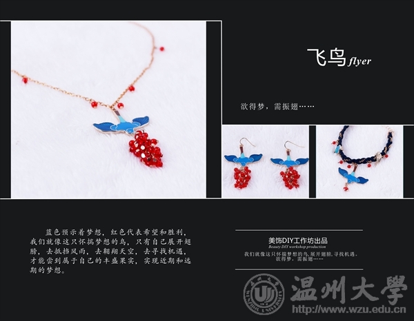 一、团队名称 美饰DIY工作坊二、工作室简介 美饰DIY工作坊成立于2013年11月。以首饰定制结合个人形象设计为主要运营模式,旨在为顾客提供独一无二的个性时尚搭配。纯手工定制的魅力在于独具匠心的设计、有人情味的过程,无声的自我表达。我们相信每一件饰品都是个性的诉说,是一场你与时尚的约会,我们在MS等你。 产品主要针对喜欢个性、慢节奏的20-40岁的老员工及轻熟女性。 工作室目前稳定运行,拥有研发单品135件,系列80套。入驻创业园,校级项目结题,正在运行国家级项目。多次受邀参加创意文化展,与Vivi&sisi服装高定店合作,参加首饰比赛获得一、二、三等奖,被弗洛拉聘请为首饰设计师,我们的产品多次出现在校园文化节及社团活动中。三、团队组成 杨冰 沈美妍 李艳燕 夏俞瑜王新四、成果展示五、创业领域 首饰定制、形象管理、DIY体验六、创业感言 创业是好的。它让你在别人玩的时候去工作,它让你在作业完成的时候去工作,它让你在睡觉的时候去工作,它让你在所有的时候都在想它爱它呵护它。 有时候特别痛苦,有时候特别开心,有时候又后悔了,有时候又觉得不够努力。百味杂陈,冷暖自知。过程中想放弃是一定的,但想要坚持的结果也是必须的。走走停停,踽踽独行,青春嘛,总该拼一把! 美饰DIY工作坊二维码 供稿:美饰DIY工作坊本版编辑:张昇责任编辑:团学设计宣传部终审:李艳燕金李斌
