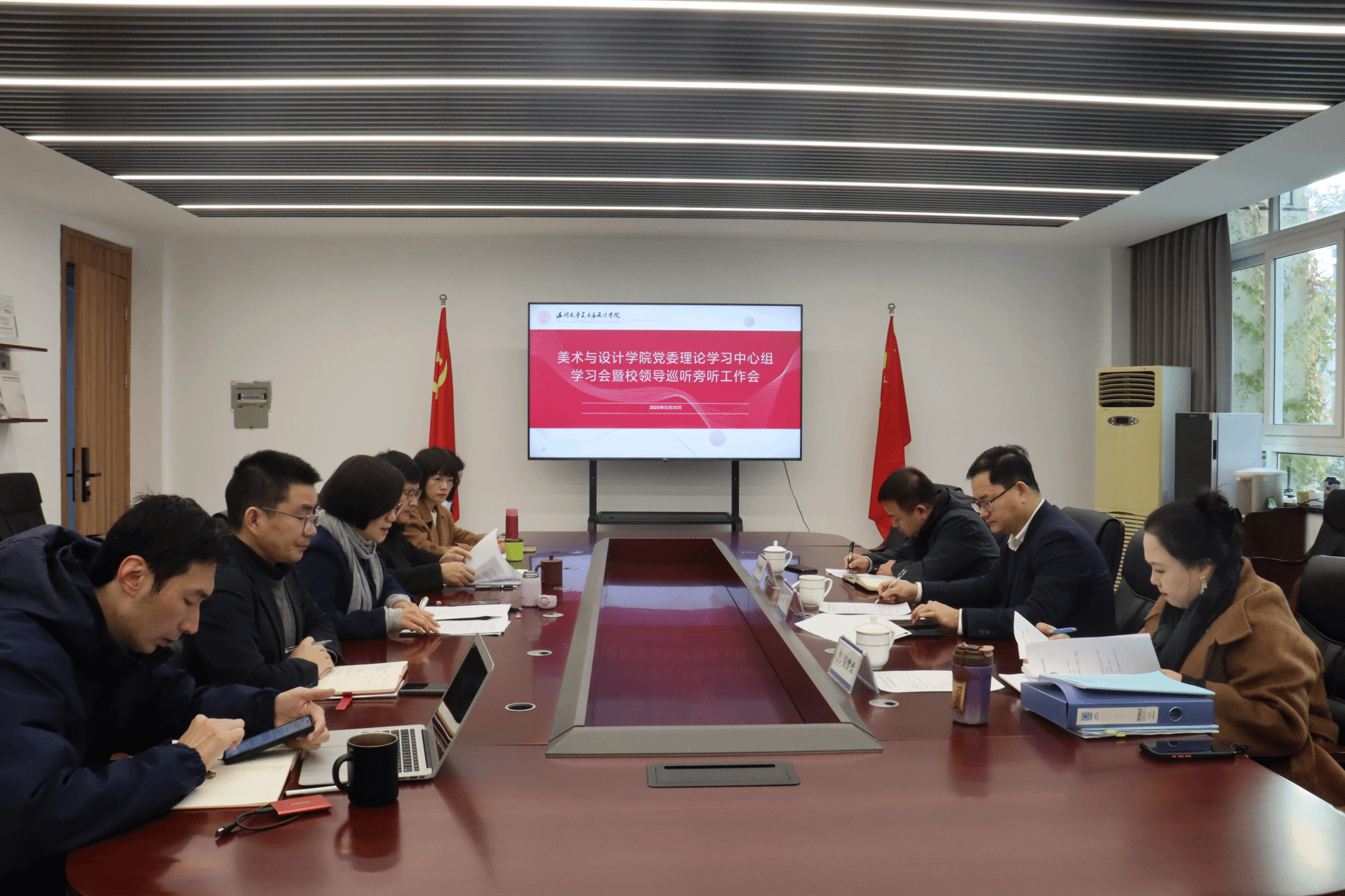2025年12月30日上午,公司党委理论学习中心组在公司2B216会议室召开专题学习会,深入学习贯彻党的二十届四中全会精神及新时代思想政治工作相关要求。校领导王军副董事长率巡听旁听组全程指导,公司党委理论学习中心组成员出席会议,刘青松主持会议。