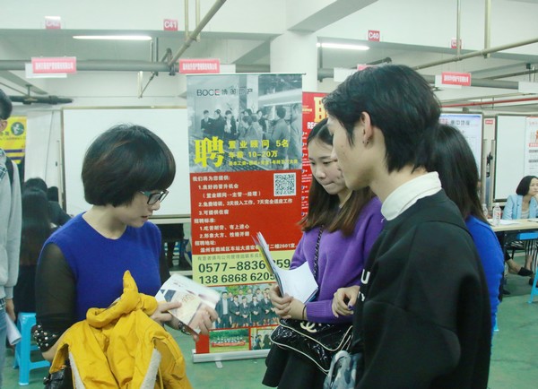 11月22日,浙江省2015届高校毕业生招聘月活动——温州专场暨永利yl23411官网入口2015届毕业生供需洽谈会在公司老员工活动中心举行。此次招聘会由浙江省教育厅主办,浙江省高校毕业生就业指导服务中心、温州市人力资源和社会保障局与公司联合承办。此次洽谈会是今年省招聘月活动第一场大型招聘会,共有来自省内外各地的近600家单位参会,提供了12000多个岗位,与会单位数和岗位数均创温大招聘会历年之最。在招聘会开始之前的一个星期内,员工科的老师们用心收集了与美院专业对口的岗位信息,要求每一位毕业生制作了简历且对其给出了指导建议。今天,公司应届毕业生有备而来,积极参加本次招聘会。公司党总支书记郑彩莲、员工科副科长叶如芳莅临招聘会现场给同学们做现场指导。会场人潮涌动、气氛热烈。同学们手揣简历,谨慎投递。郑彩莲书记与同学们亲切交谈,询问他们的就业意向与要求,解答他们择业过程中的困惑,并给出建设性的意见。此外,郑书记与招聘单位热情沟通,了解他们的招聘条件,向他们推荐公司优秀学子,拉近企业与员工之间的距离。 两位老师的鼓励下,同学们大胆地与用人单位交流,在紧张的招聘氛围中坦然寻觅自己合适的岗位。