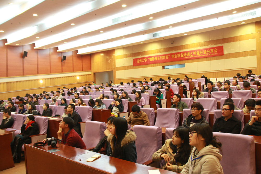 12月5日下午,由公司团学创业就业部与温大创业协会联办的“德修身&创青春”创业就业培训活动之创业经验分享会在育英图书馆二楼学术报告厅如期举行。此次分享会邀请了温州东帝工业设计公司总经理蔡良选先生、温州实力科技有限公司总经理陈小飞先生和温州左岸工业设计公司总经理黄松江先生,由公司员工科辅导员杜茜主持。三位创业成功人士前来分享他们的创业历程,众多温大学子慕名前来参加此次活动。讲座伊始,蔡良选先生以自身经历分享了自己艰辛的创业路。从一开始承载着梦想的出租房,到现在的大公司。蔡总一路上碰到了各种磨难,但是都没能打退他一颗坚定的创业心,更是告诫同学们要学会坚持,因为曙光总是在接踵打击之后的,我们不能轻言放弃。紧接着是陈小飞先生的创业历程,从第一单的尴尬,从艰苦的创业初期,陈总分享了他的人生信念:我们要学会尊重每一个人,我们要不畏惧每一次的失败,我们要让未来走在自己的脚下。随后,黄松江先生通过精彩的PPT,为我们展示了创业初期到如今稳定的每一次进步,告诉同学们在信息爆炸的时代,我们要抓住每一次机遇,敢于挑战,开拓思维,因为我们还年轻,我们有失败的资本。三位老总经验分享后,会场进入了互动环节,台下的听众们纷纷抛出当下尖锐的创业难题,总经理们都一一为同学们耐心解答,还为同学们提供了自己公司选拔人才的标准。希望同学们能够更好的学好专业知识,为未来铺路。本次丰富精彩的创业经验分享会,让同学们进一步了解了创业途中会碰到的一系列问题,更让同学们懂得了在创业的路上,我们应该做什么、怎么做和如何做。(通讯员:卢梦婷,摄影:刘炳言 )