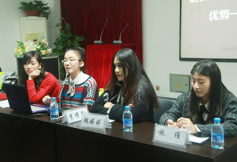 此次交流会设有两个环节。第一个环节是经验传授;四位学姐分别进行了作品展示和讲解,跟大家分享了备赛过程中的酸甜苦辣,可谓“台下十年功,台上一分钟”,从他们的艰苦经历中,同学们读懂了“一分耕耘一分收获”,成功的背后是多少汗水的积累。从他们的优秀作品中,同学们明白了在艺术领域“创新”的重要性,灵感源于生活,我们需要培养的是一双捕捉灵感的眼睛。第二个环节我问你答,在场同学们踊跃举手提问,谁也不想错过这次难得的机会。有比赛信息如何取得的疑问,有关于专业兴趣培养的困惑,有关于创意如何培养的难题……四位学姐对同学们的提问都作出了详细的回答,现场气氛一度高涨,问题不断,交流会一直持续到晚上十点。