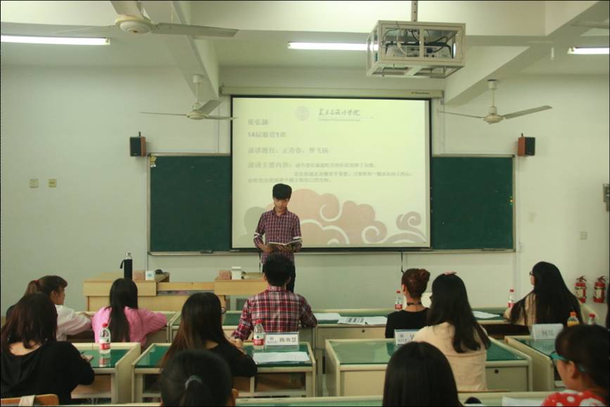 在这秋高气爽的十月,永利yl23411官网迎来了第二届的新生演讲比赛。2014年10月22日,2014级新生演讲比赛初赛在2B2001举办。本次演讲的主题是“正青春,梦飞扬”,由美院团学学风纪检部承办。员工科辅导员陈赛慧老师、员工会副主席叶佳颖、上一届纪检部部长何瑶做为嘉宾出席本次会议,上一届新生演讲赛一二等奖获得者刘子媛、张昇、丁凯迪担任本次比赛评委。