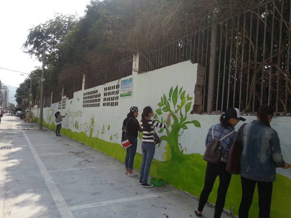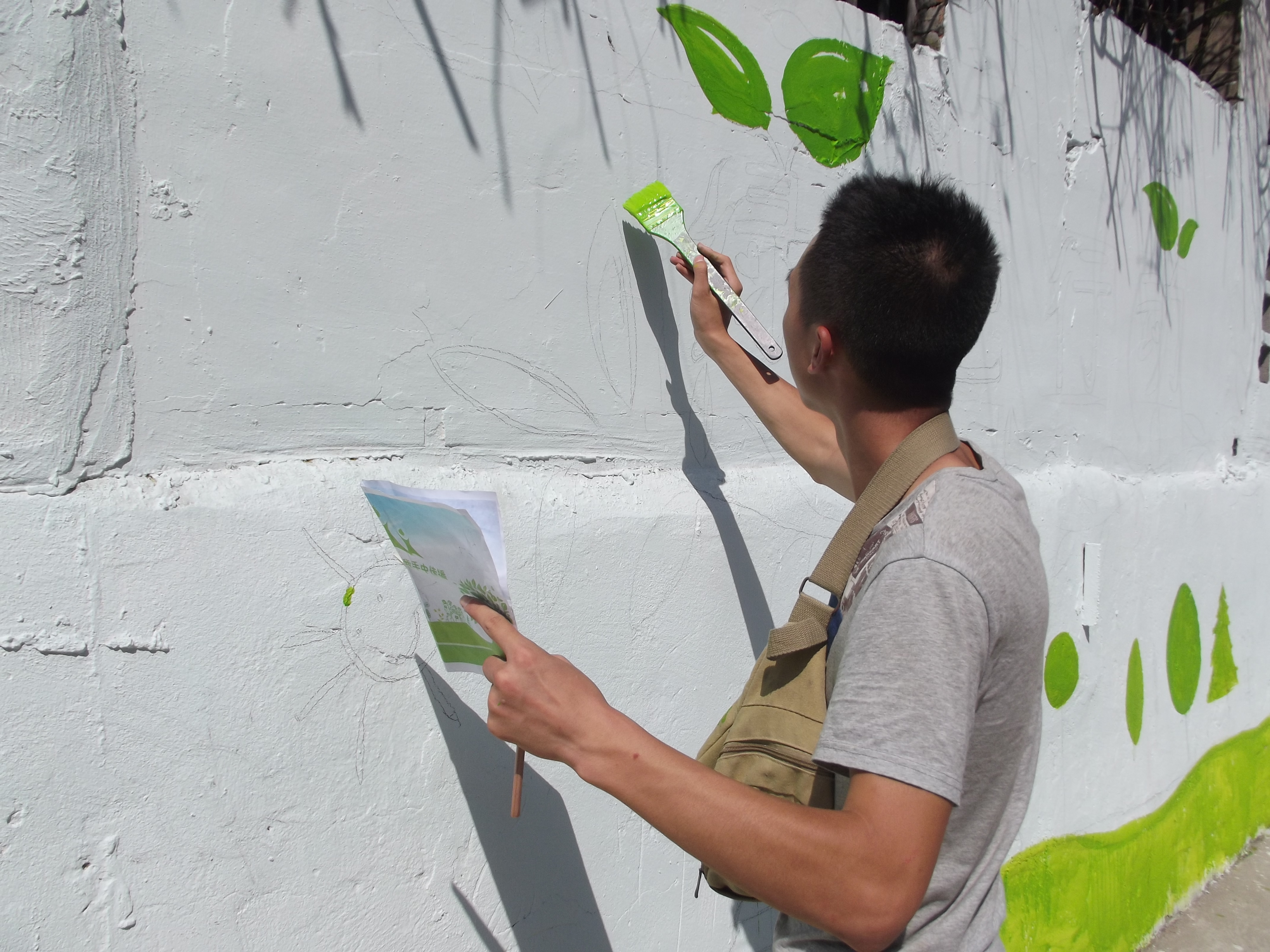 10月12日上午8点,永利yl23411官网“艺家人”青年志愿者协会与瓯海区茶山镇梅泉社区居委会合作举办了“创建文明城市”的墙绘活动。激情满怀的大员工志愿者们结合自身专业优势,以“创建文明城市”为主题,以绿色作为主色调,宣传低碳环保的生活理念。在志愿者的认真绘制下,白色空旷的墙壁被一幅幅美丽的图画所代替,引来附近居民一片赞叹。