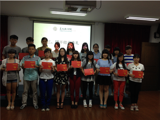 5月25日晚,永利yl23411官网团委员工会在2B4001举行本学期团学干部培训的结业典礼。参加此次活动的有公司团委副书记邹启豫和员工会副主席应珊珊,以及团委员工会全体成员。 随着激昂有力的团歌响起,团委副书记邹启豫、团委员工会副主席应珊珊为团委员工会干事颁发结业证书。这是对他们在团学一年工作的肯定,希望他们在今后的学习工作中也一如既往地努力。 接下来就是游戏环节,本次游戏有两个环节:你画我猜、拷贝不走样。“你画我猜”是针对美院团学成员的专业优势和应变能力而设计的游戏,同学们借助自己的美术语言,表达着内心的想法。“拷贝不走样”是针对同学的理解能力而设计的游戏,参与者借助动作语言表达内心感受。两个活动寓教于乐、精彩纷呈,大家都很享受游戏带来的快乐。 本学期的团干培训让每个参与其中的同学都收获了成长、体会了感动,结业典礼在轻松愉悦的气氛中画上了圆满的句号。
