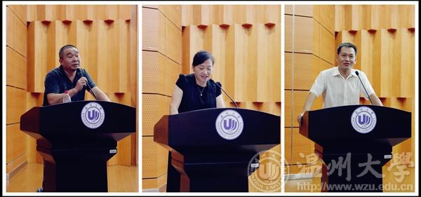接着,各系主任上台发表讲话。美术系陈伟教授为新生们带来了“梦想与现实”这一主题的精彩讲话,他希望新生们要拥有一个远大的梦想,并不畏现实的束缚,坚持不懈地为梦想奋斗。设计系朱广宇教授和服装系陈明艳教授为新生们介绍了本专业的特点,指出捕捉时尚元素,激发灵感创意是学好设计的关键。随后,各专业的员工代表上台做专业介绍和作品展示。灵动深刻的绘画、时尚美观的产品设计、绚丽个性的服装鞋靴等等课堂作业、获奖作品登台亮相,赢得了现场阵阵赞叹。