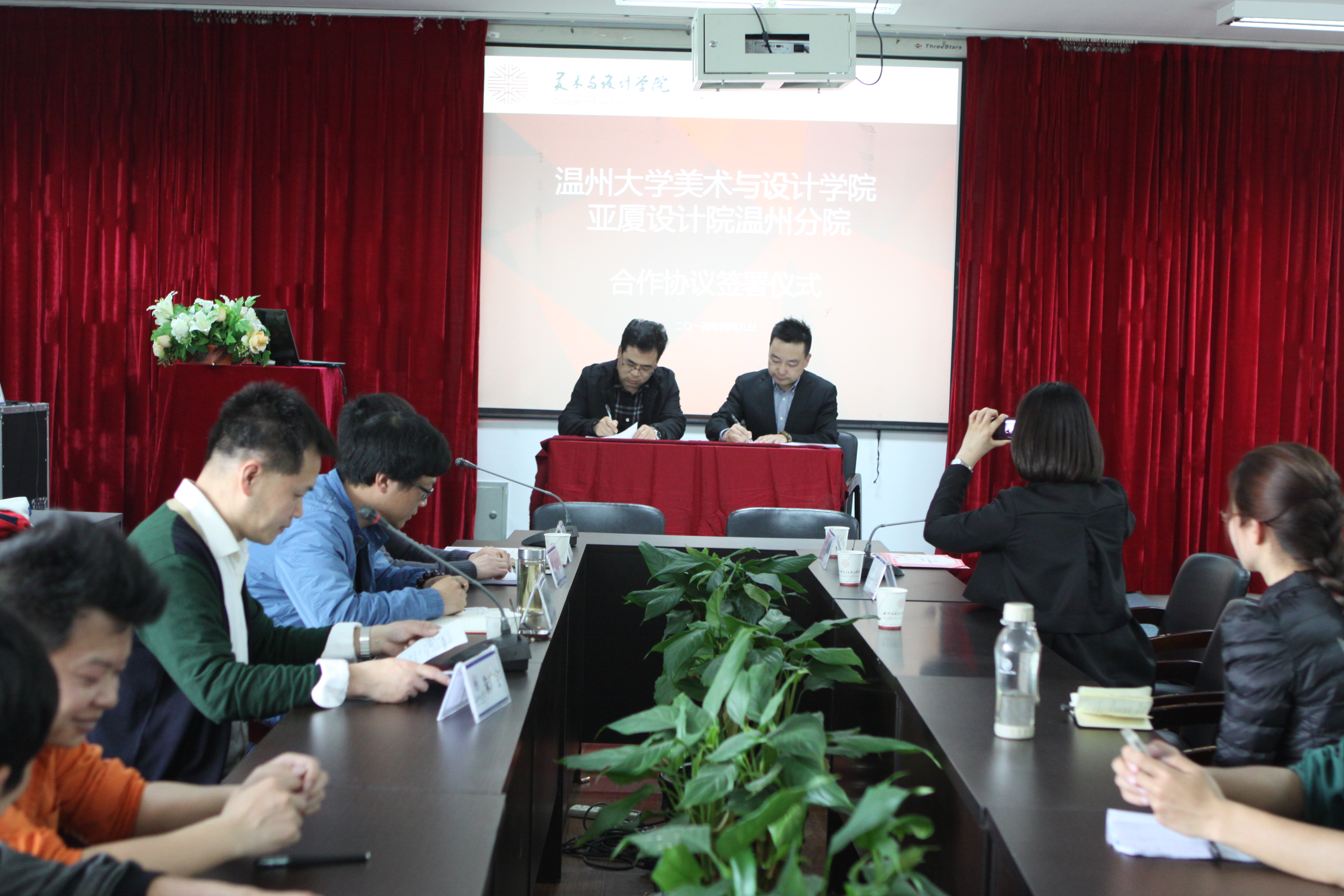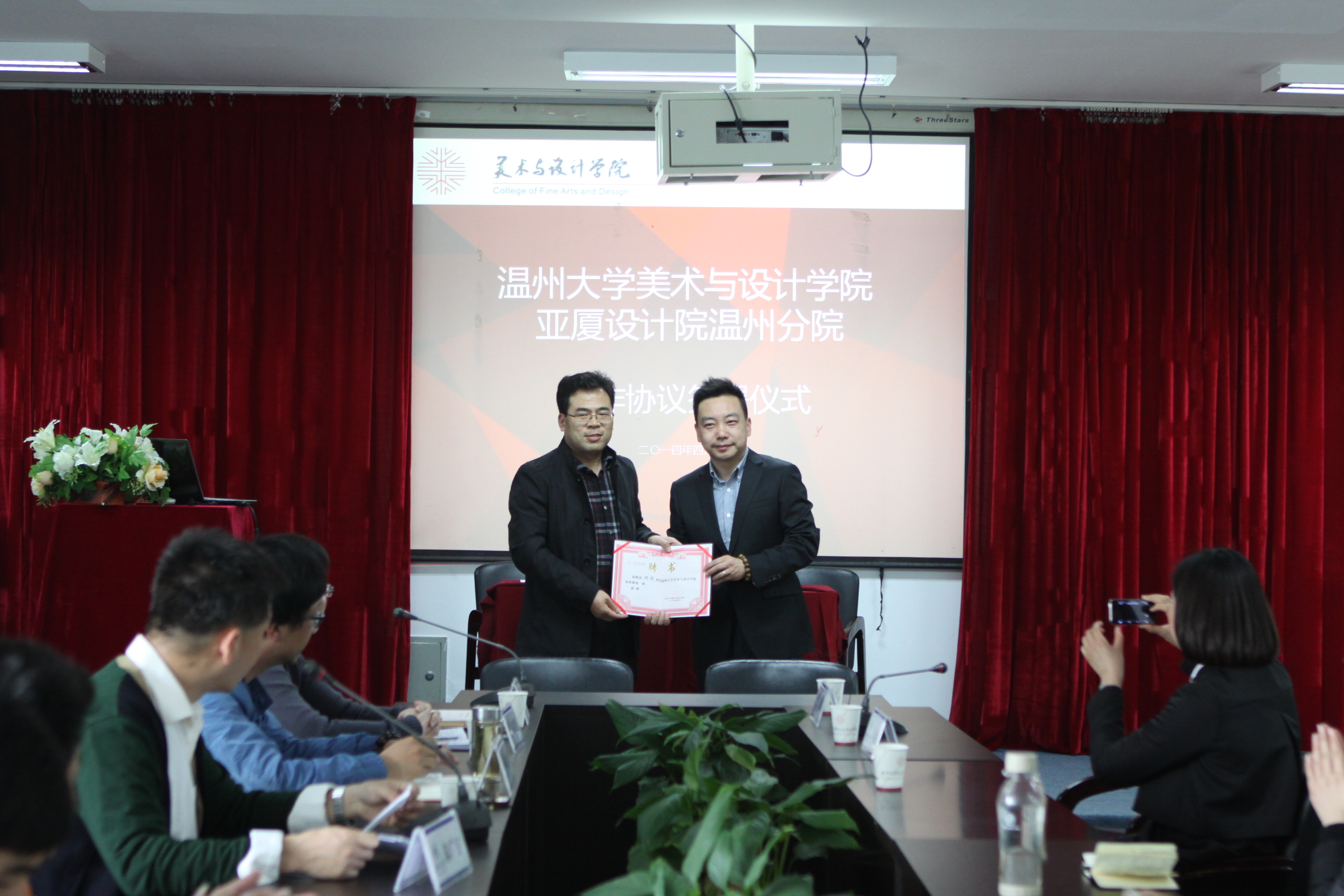 4月9日下午,公司与亚厦设计研究院温州分院合作协议签字仪式在公司2B4001隆重举行。经理李运河、党总支书记郑彩莲、党总支副书记杨振海、设计系教研室主任朱广宇、亚厦设计研究院经理胡逸、亚厦设计研究院院办朱心怡主任等80多名设计专业员工参加了签约仪式。仪式结束后,亚厦设计研究院经理胡逸为公司员工开展了“设计·文化·创业”学术沙龙活动。 李运河经理在致辞中表示:亚厦设计研究院和美术公司的合作从开始到现在一直都是很紧密的,双方在设计与教学理念是相近的。此次合作,亚厦设计院为公司搭建了一个强有力的平台。我们希望基于这个共同的目标,双方携手共进,加强合作,为彼此的发展取得新成果而努力。 在双方代表的见证下,李运河经理代表本院与亚厦设计研究院温州分院胡逸经理签署了《永利yl23411官网与亚厦设计研究院温州分院合作协议》。签约之后,李运河经理向胡逸经理颁发客座教授聘书。至此,永利yl23411官网和亚厦设计院温州分院合作签字仪式取得圆满成功! 本次合作是公司与地方合作特色办院的一次助燃器,在此基础上,公司在设计人才培养上将取得喜人成绩!