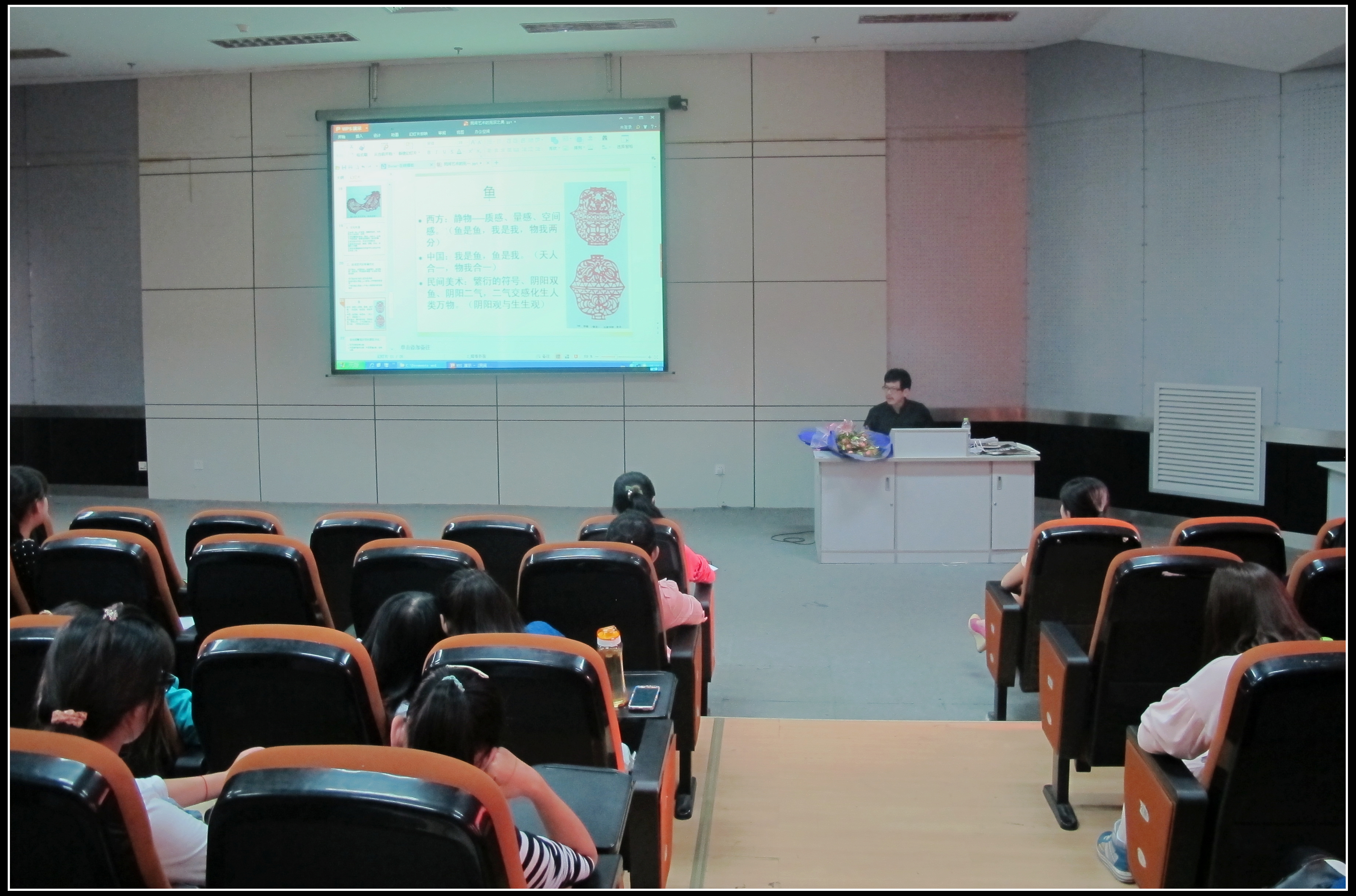 邓教授从民间艺术的社会属性、民间艺术的审美方式、民间美术的充实之美和公司派艺术教育在民间艺术中吸取营养四方面做了具体讲解。他讲到,“民间艺术”是艺术领域中的一项分类,它包括皮影、剪纸、编织、绣花、狮子舞等等,它是中华文化的瑰宝。中国当代的设计需要民间艺术来充实和丰富其底蕴,同时又要创新,使设计作品既有民族感,又兼具现代感。只有把民间的优秀文化和现代设计理念紧密结合起来,才能创作出具有中国特色和韵味的经典之作。