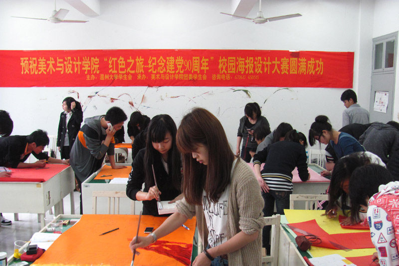穿越氤氲的风烟,走过蒙尘的岁月,历经血战,改革和创新的风雨洗礼,中国共产党迎来了她90岁的生日。为讴歌建党90年来所取得的伟大成就,永利yl23411官网举行了一系列“红色之旅——建党90周年”主题活动。 2011年4月16日下午,由永利yl23411官网入口员工会主办,永利yl23411官网团委员工会承办的永利yl23411官网入口首届“艺生艺色”校园艺术系列大赛暨永利yl23411官网第十二届“艺苑杯”之“红色之旅——建党90周年”校园海报设计大赛活动在美院火热举行,率先拉开了颂党系列活动的序幕。 此次比赛面向全体温老员工开展,分为专业组和非专业组。以整体效果,紧扣主题,艺术美感,构思创意,作品介绍这5个方面作为评分标准。专业组分为一二三等奖,非专业组分为一二等奖和创意奖。 本次活动大概有25组专业组同学和30组非专业组的同学报名参加。天空下着大雨,每个人进来的时候都湿漉漉的,但丝毫没有影响到他们参赛的热情。同学们一个个专心致志,抓紧时间,一笔一划都耐心仔细的勾勒着,气氛十分浓郁。工作人员们为了及时给每位选手提供所需的用具也都忙碌的奔波着。 博观而约取,厚积而薄发。同学们虽没有“笔落惊风雨”之势,却也各个通过自己的精心设计,为大家展现了一场美仑美奂,精彩纷呈的书画创意设计秀。 本次活动以红色,建党为主题,主要是为了增强同学们对党的认识和了解,回顾并学习党的历史和传统,培养时刻跟着党走的意识。 90年风雨沧桑,90年岁月峥嵘,90年白驹过隙。中国共产党始终屹立在时代的顶端,历久弥新。借这次党90岁生日的机会,希望同学们可以踊跃参加一系列的红色建党活动,在这些形形色色的活动中体会到党的真谛。 文字:顾超群 摄影:顾超群